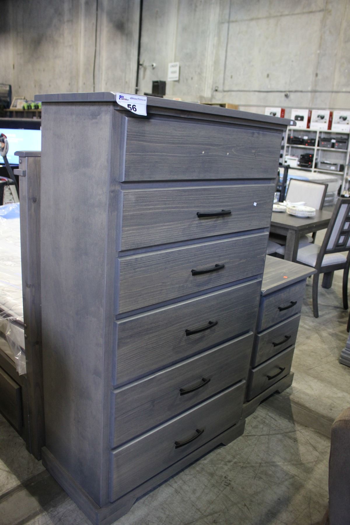 DARK GREY WOOD 6 DRAWER DRESSER & 3 DRAWER NIGHT STAND