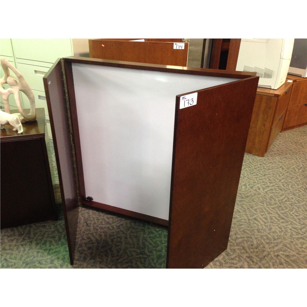 DARK MAHOGANY 4` X 4` WALL MOUNT MAGNETIC WHITEBOARD BOARDROOM CABINET