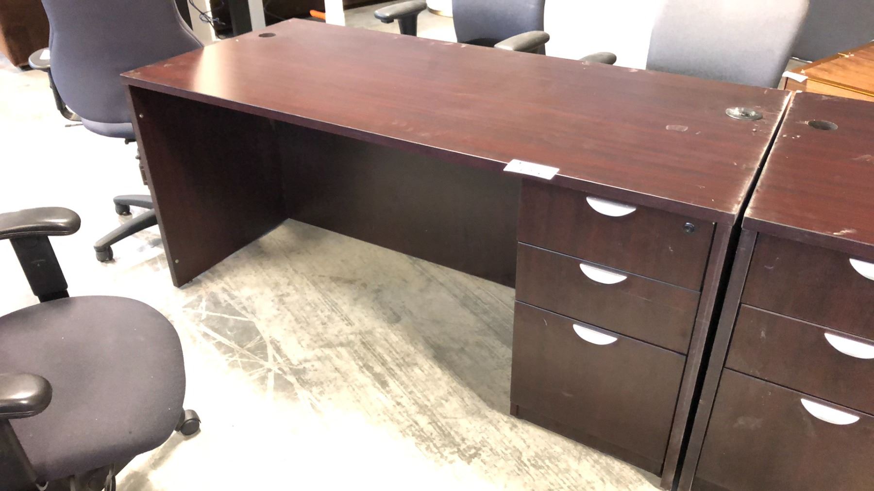 DARK MAHOGANY 66" X 30" SINGLE PEDESTAL DESK