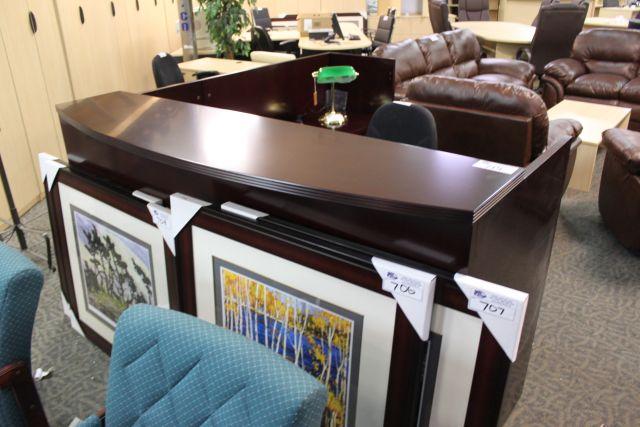 DARK MAHOGANY L-SHAPED RECEPTION COUNTER