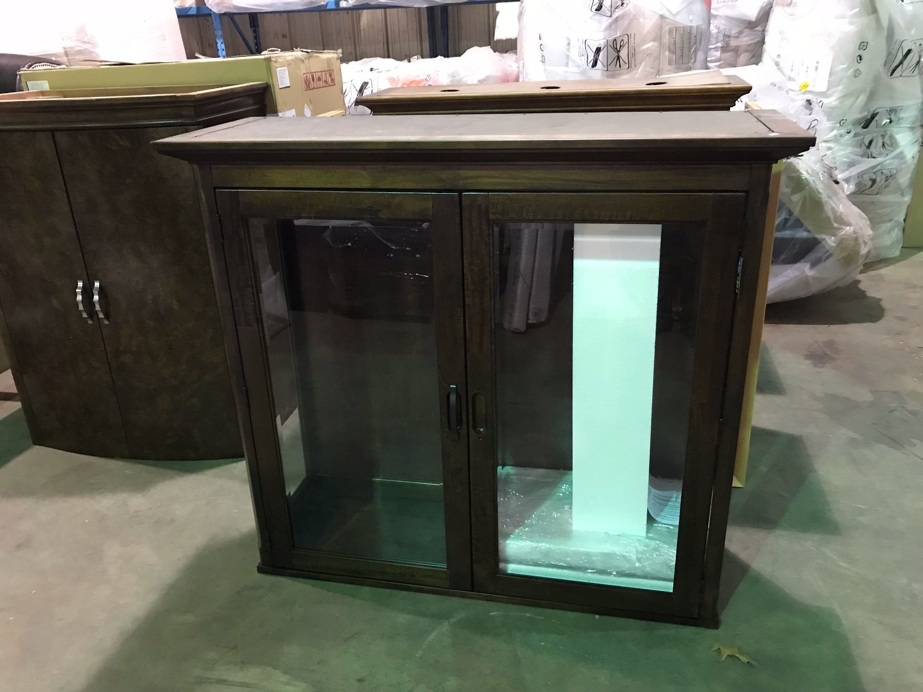 DARK WOOD 2 DOOR GLASS HUTCH