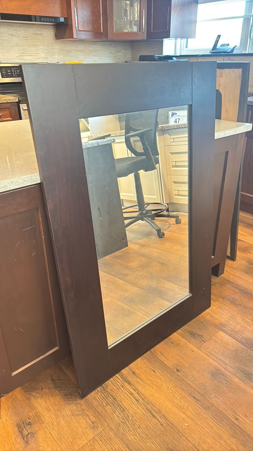 DARK WOOD 33"W X 47.5"H FRAMED MIRROR