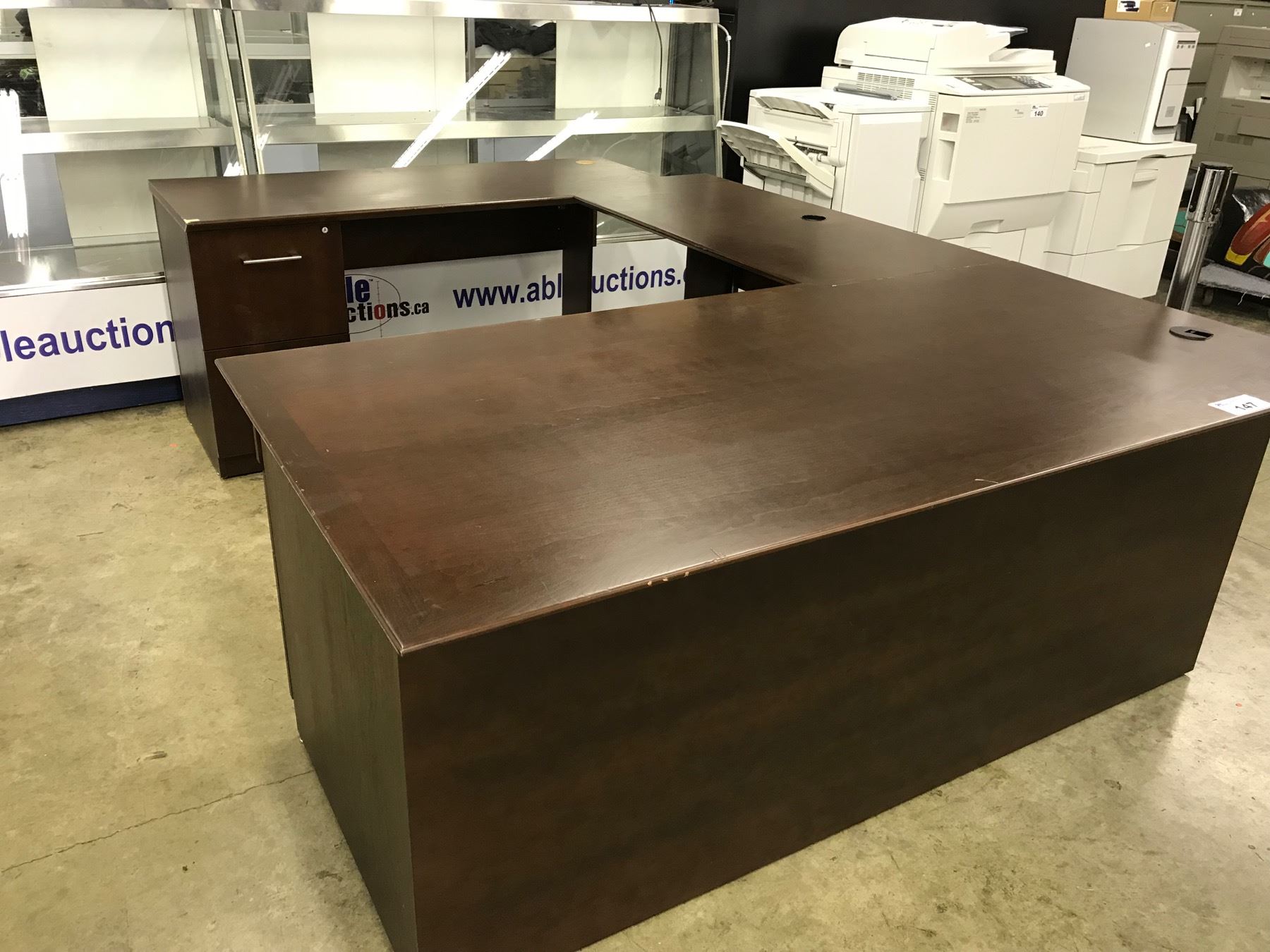 DARK WOOD 8' X 6'' U-SHAPE EXECUTIVE DESK, WITH MATCHING 6' CREDENZA
