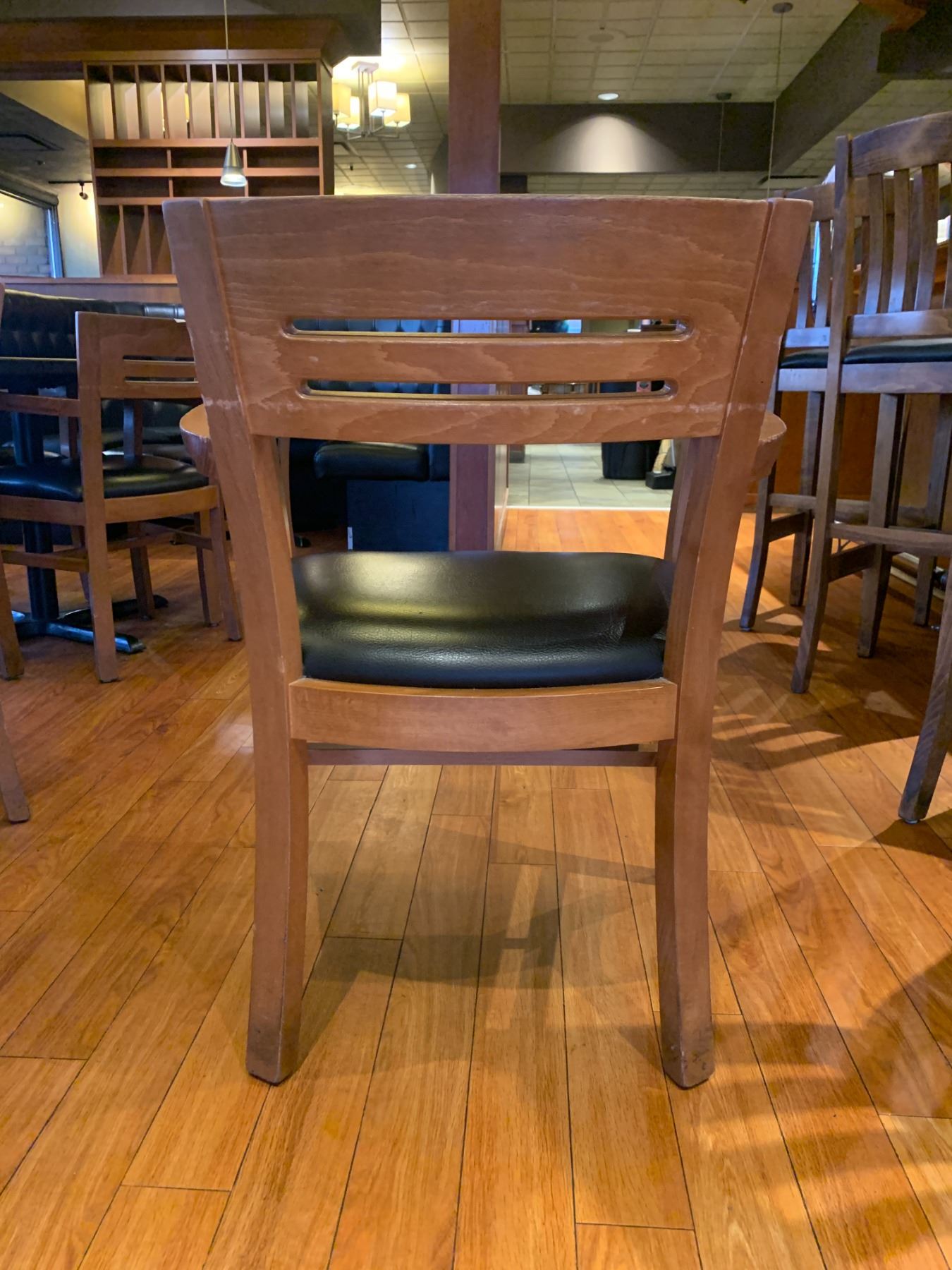 DARK WOOD & BLACK RESTAURANT ARM CHAIR