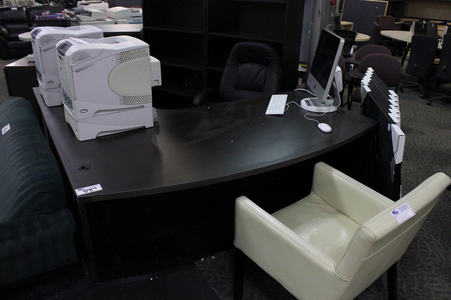 DARK WOOD BOW FRONT L-SHAPE EXECUTIVE DESK
