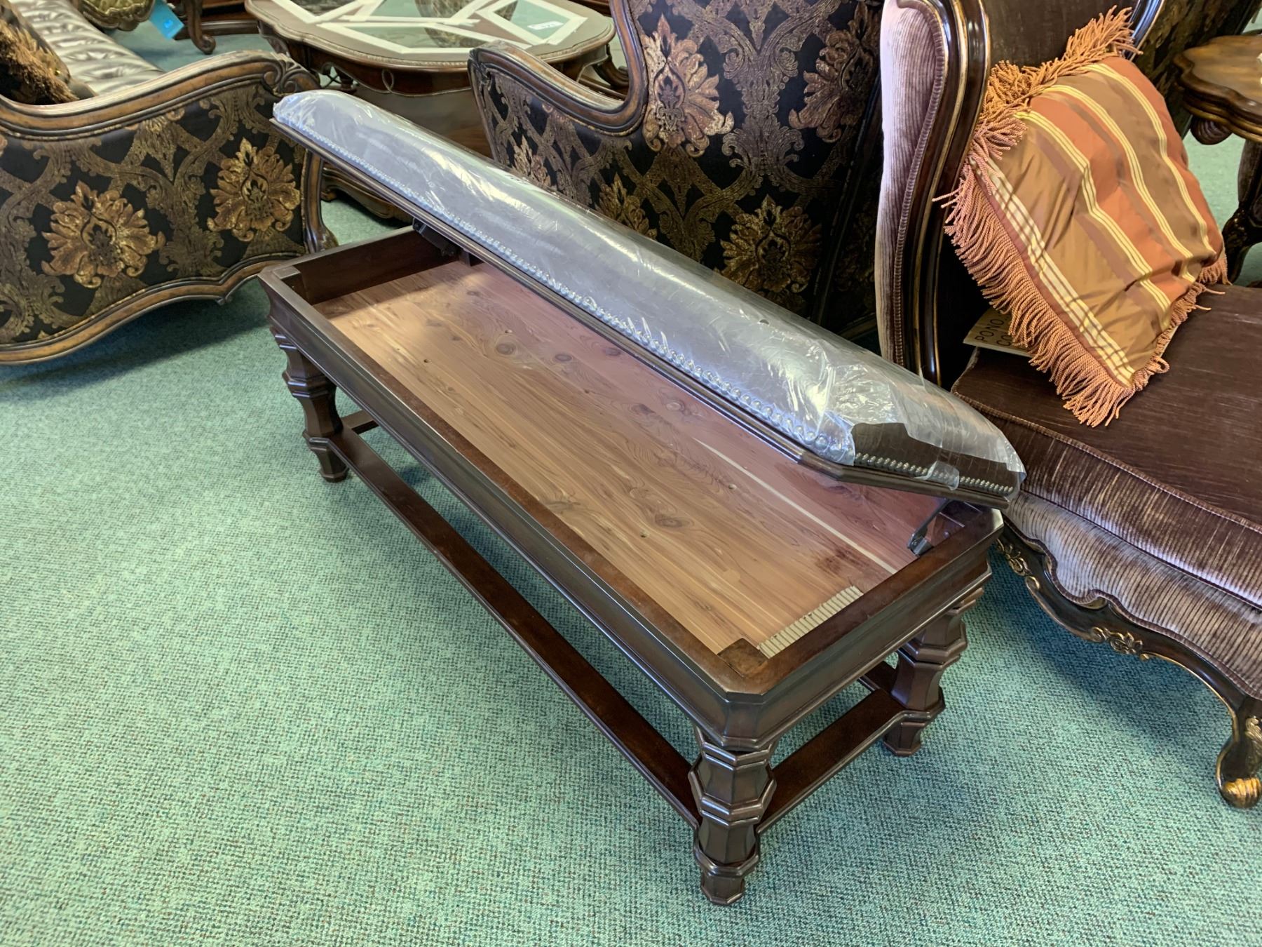 DARK WOOD & BROWN LEATHER STUDDED STORAGE BENCH
