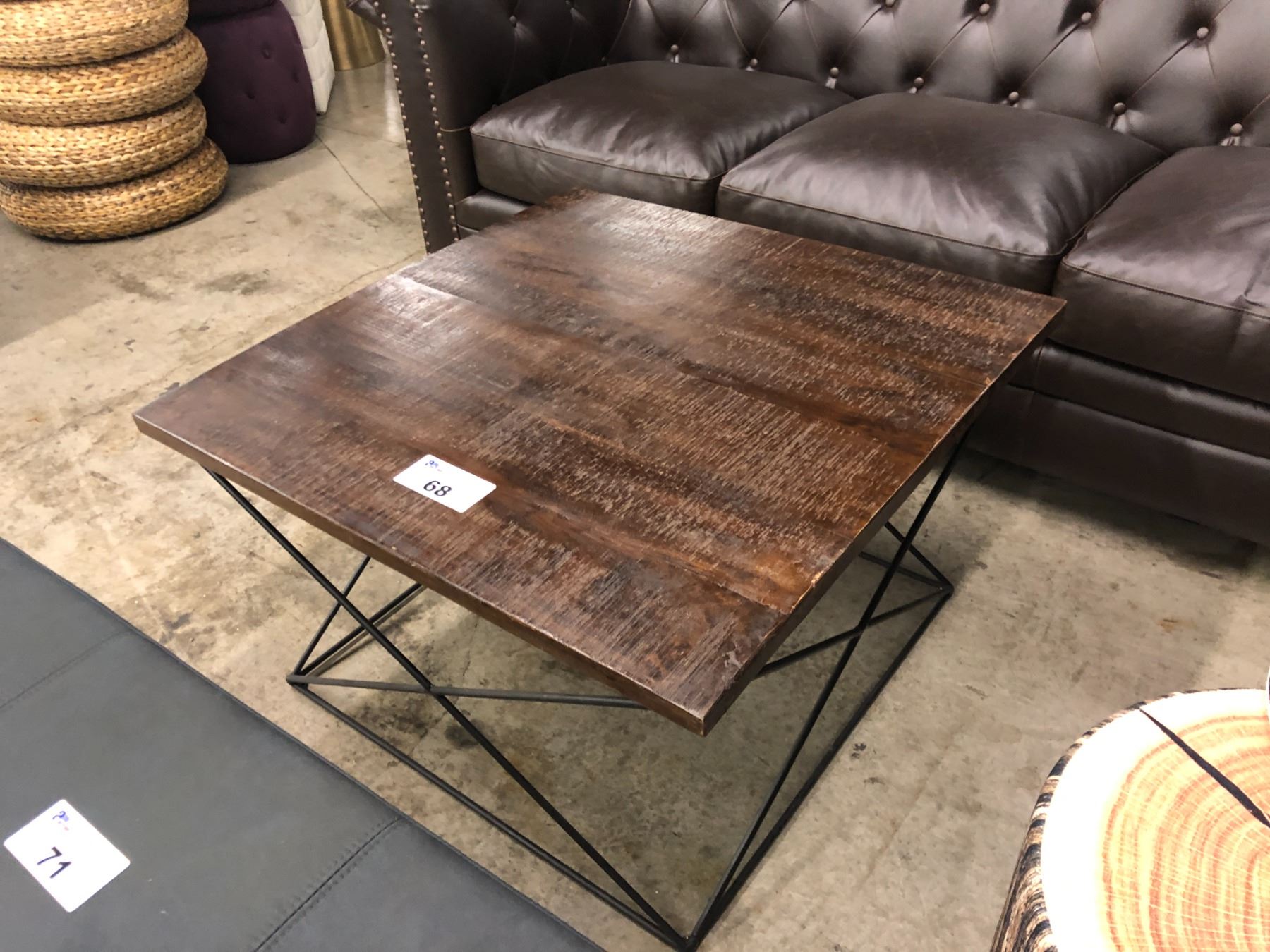 DARK WOOD TOP AND METAL FRAME SQUARE ACCENT TABLE