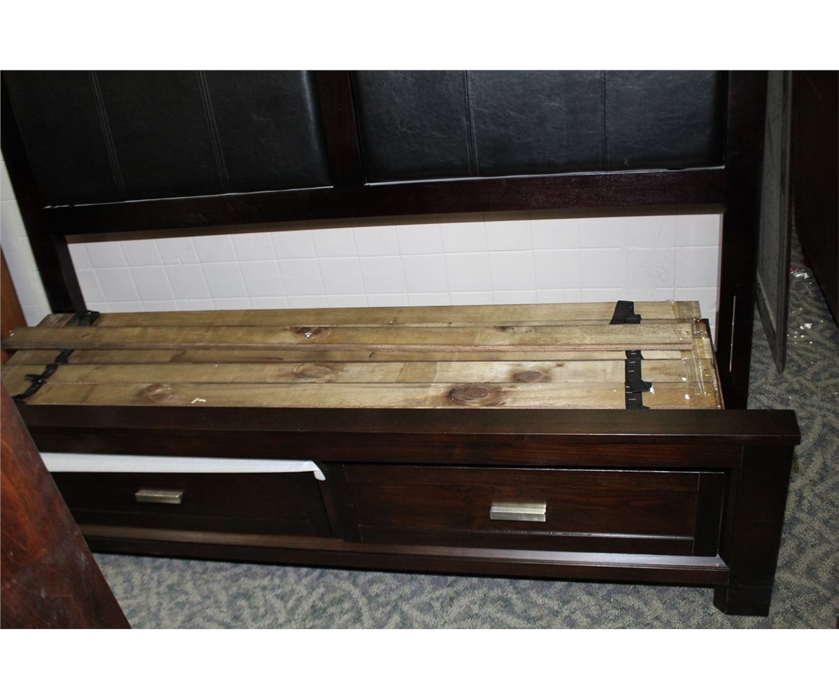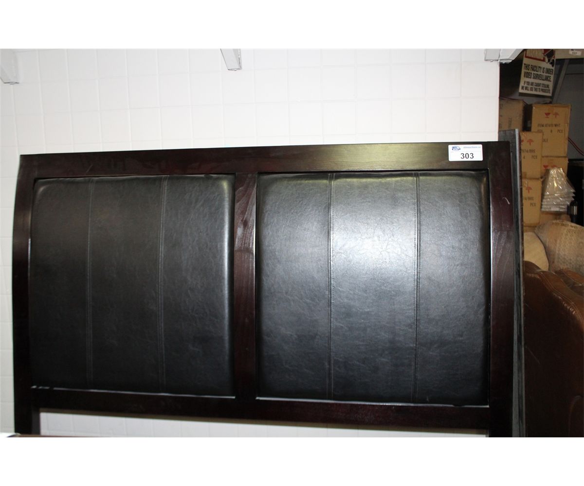 DARK WOOD WITH LEATHER PADDED QUEEN HEADBOARD AND FOOTBOARD