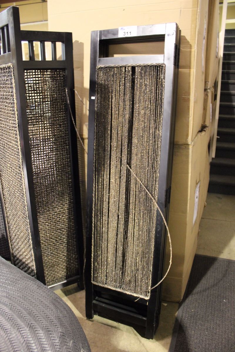 DARK WOOD & WOVEN RATTAN BI-FOLD SCREEN (DAMAGED)