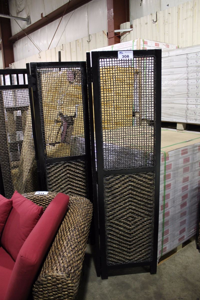 DARK WOOD & WOVEN RATTAN BI-FOLD SCREEN