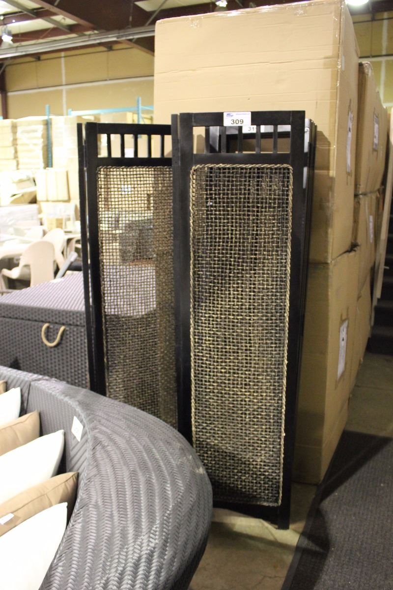 DARK WOOD & WOVEN RATTAN BI-FOLD SCREEN
