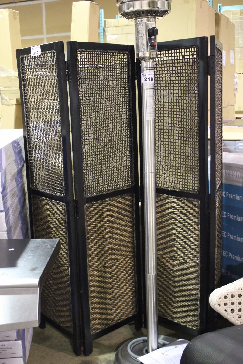 DARK WOOD & WOVEN RATTAN BI-FOLD SCREEN