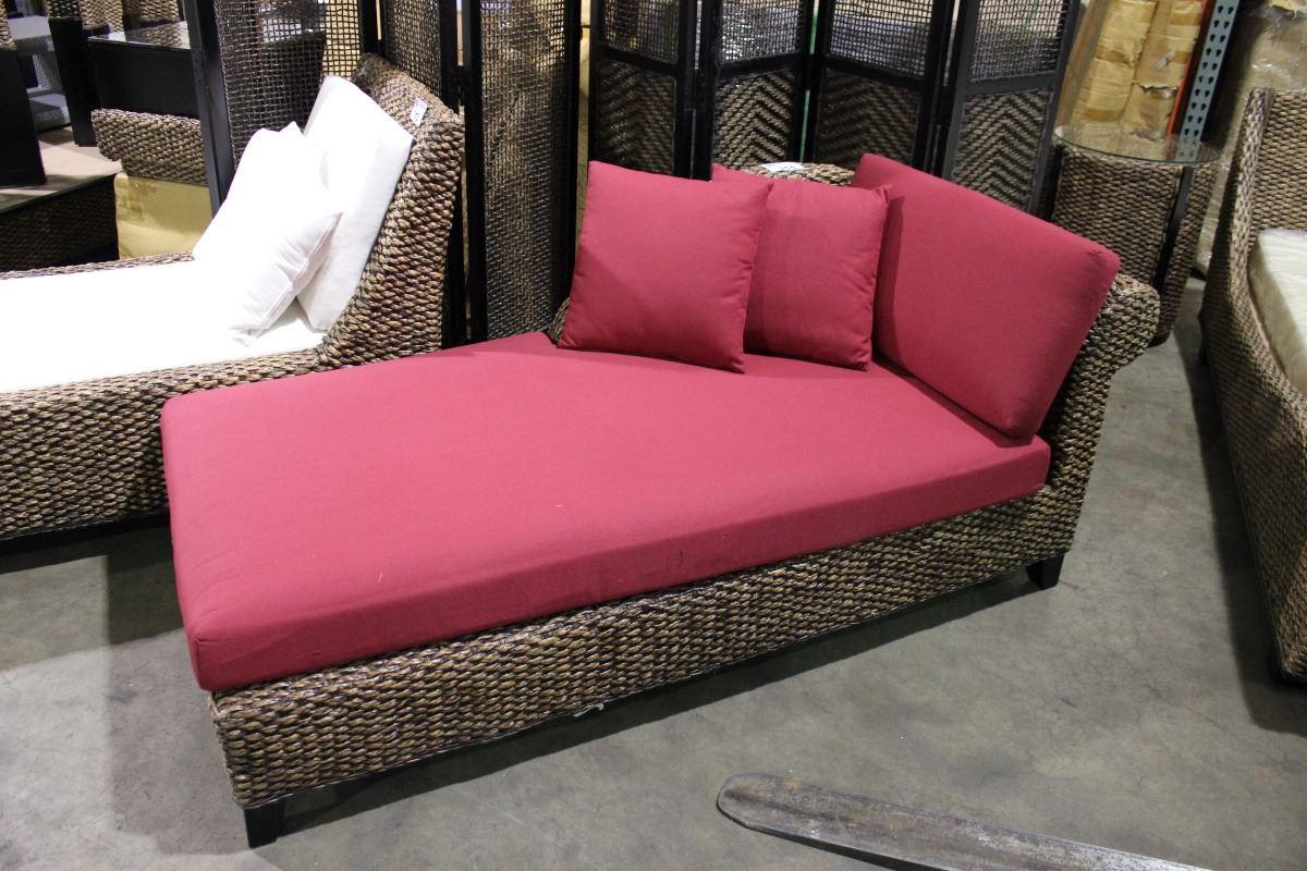 DARK WOOD & WOVEN RATTAN RED CHAISE LOUNGER