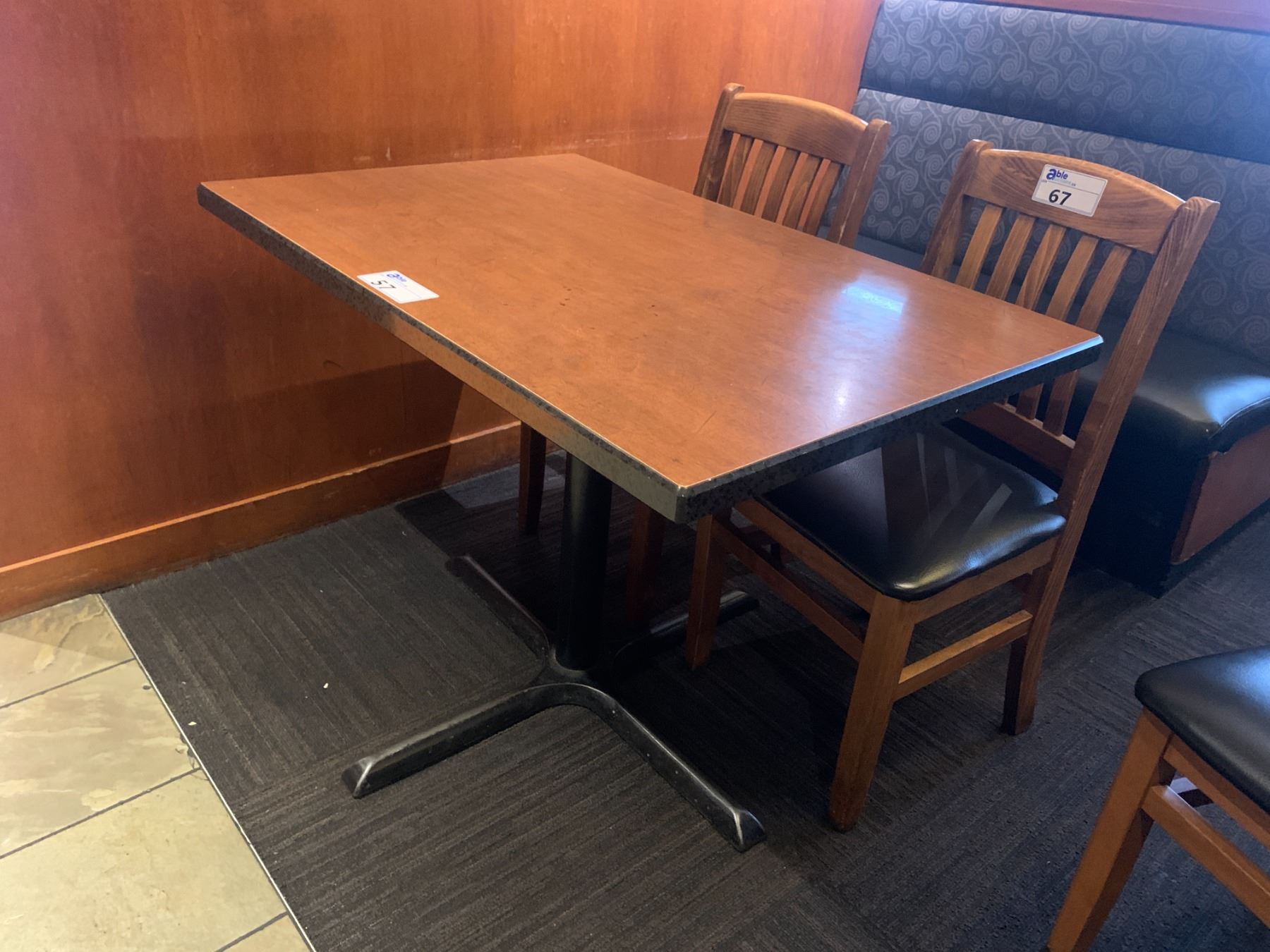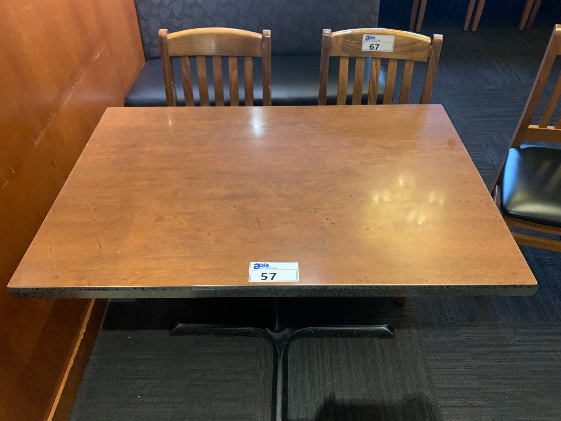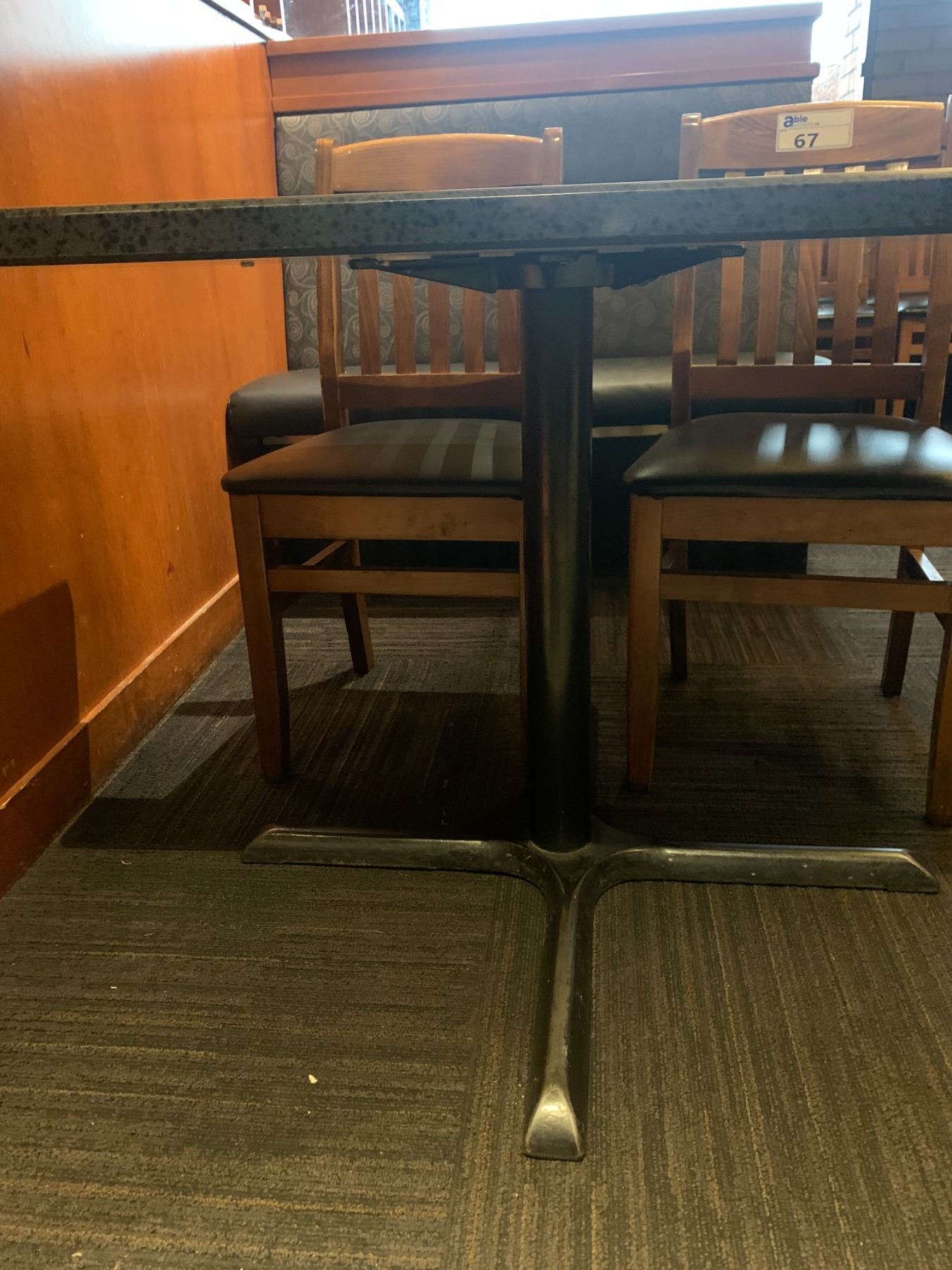 DARK WOODEN APPROX. 42"W X 28"D X 29"H METAL BASE RESTAURANT TABLE