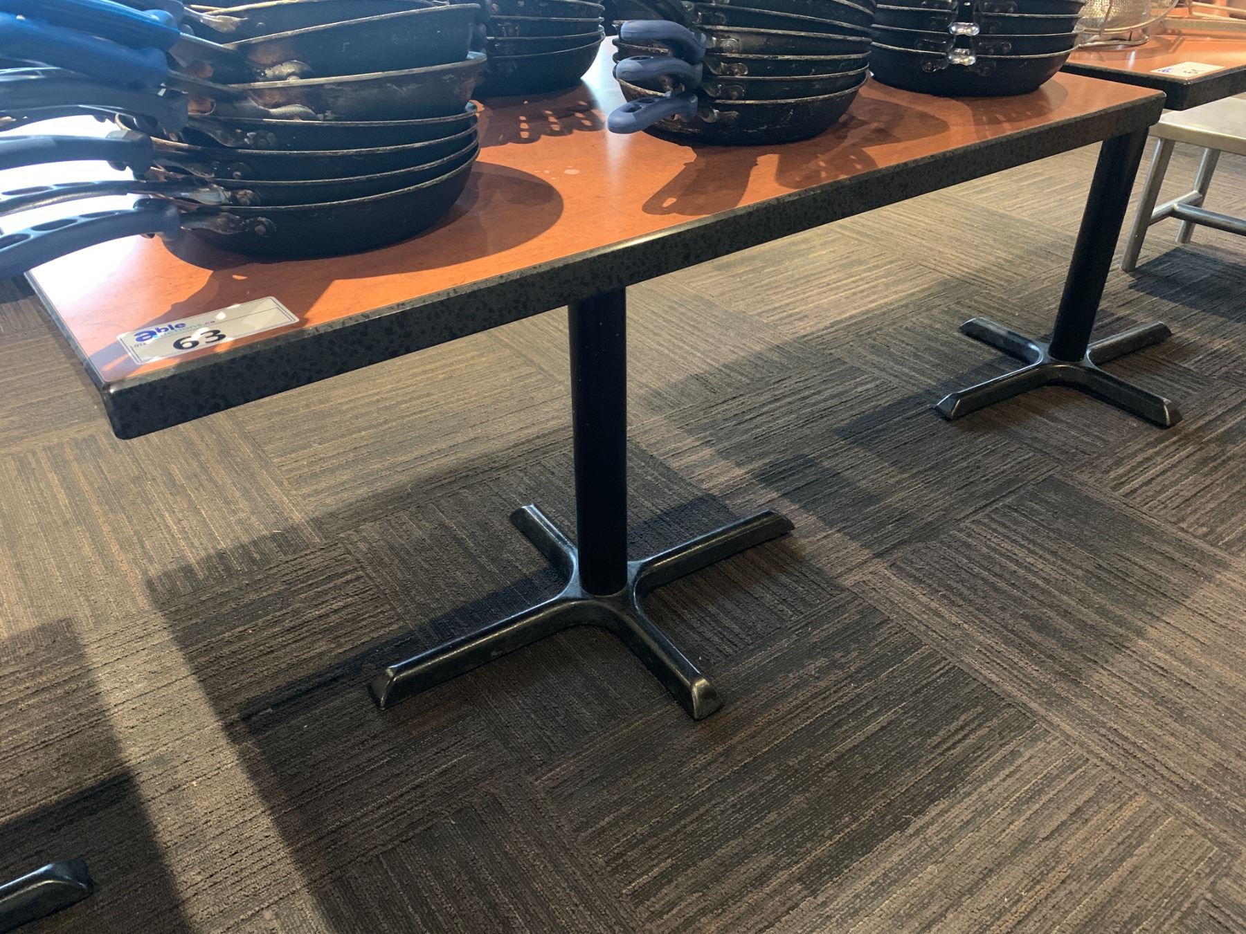DARK WOODEN APPROX. 48"W X 28"D X 29"H METAL BASE RESTAURANT TABLE *CONTENTS NOT INCLUDED*