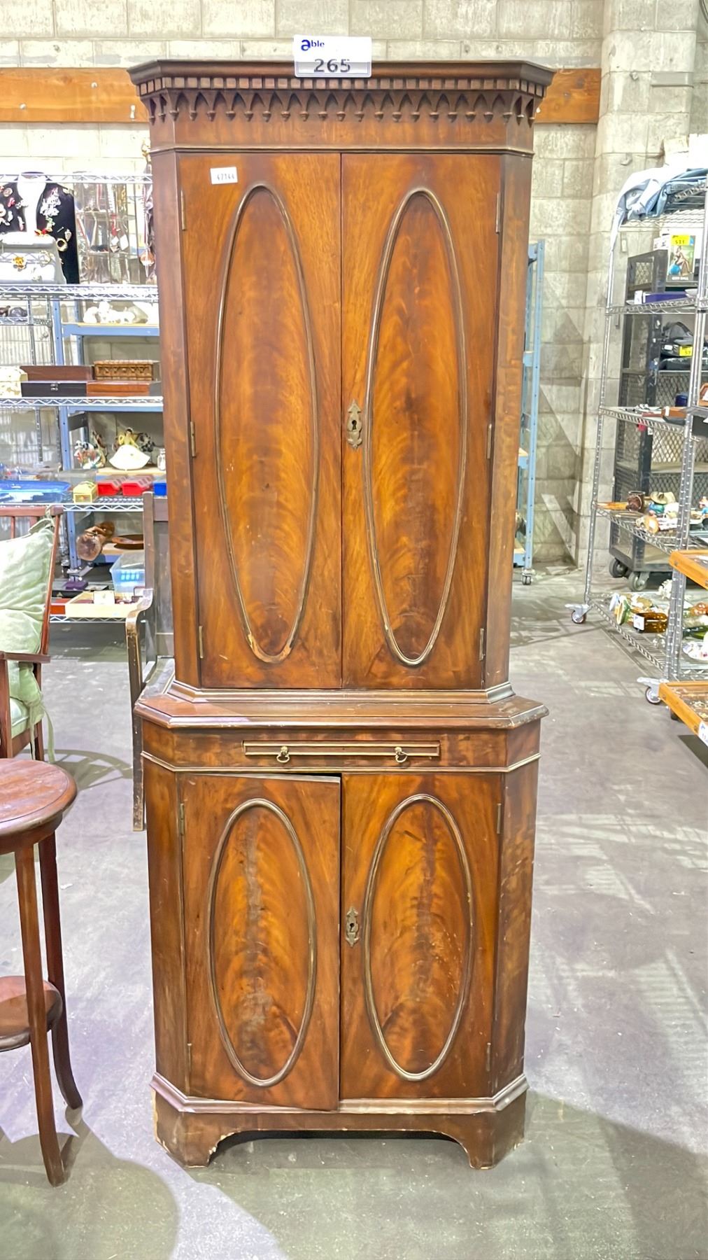 DARK WOODEN CORNER DISPLAY CABINET 26"W X 19"D X 68"H