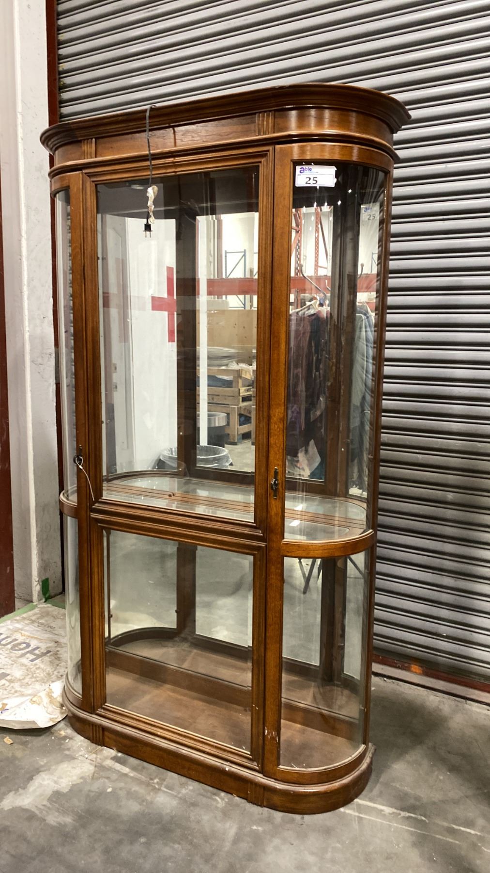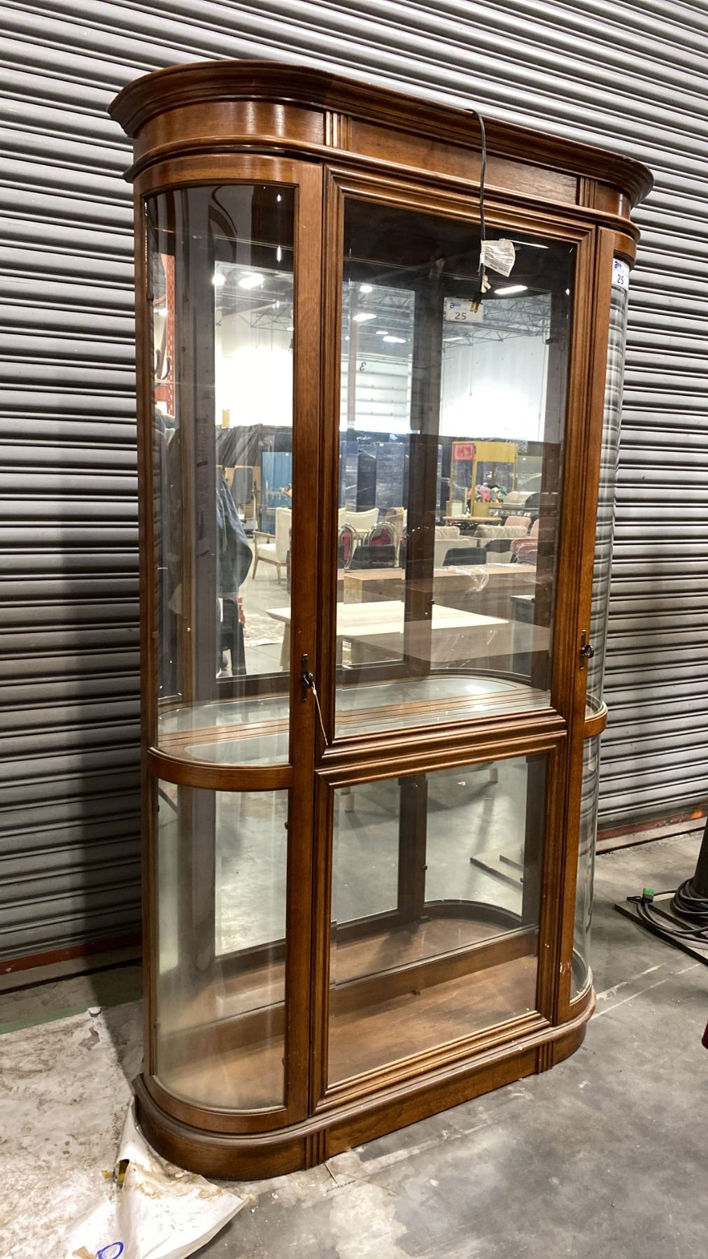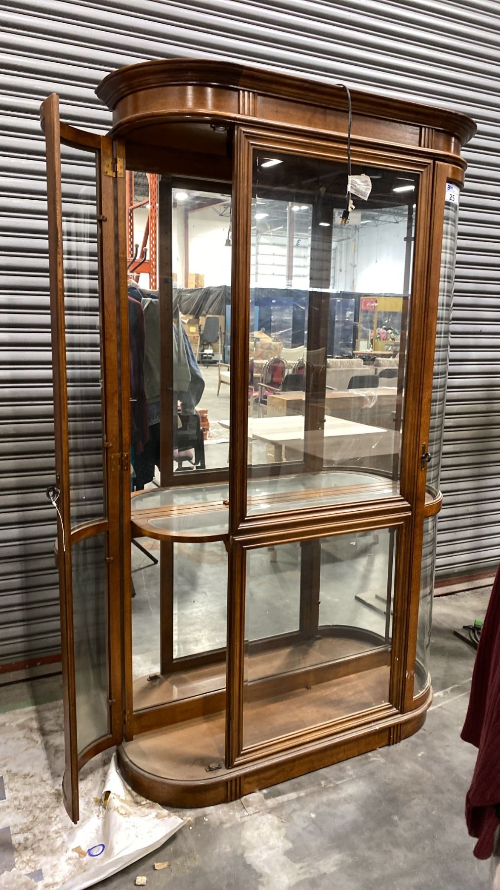 DARK WOODEN ILLUMINATED DISPLAY CABINET - APPROX. 52"W X 14"D 80"H *MISSING GLASS SHELVES*
