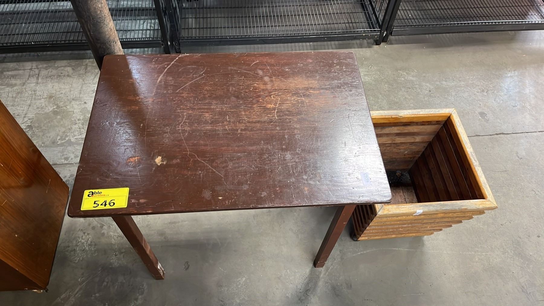 DARK WOODEN SIDE TABLE & WOODEN PLANTER BOX