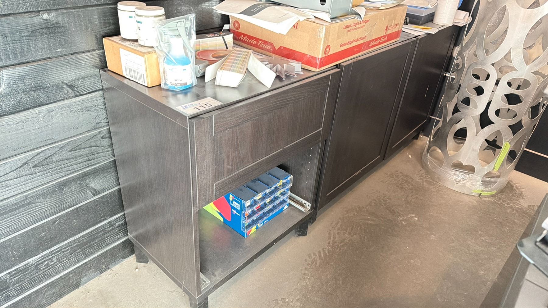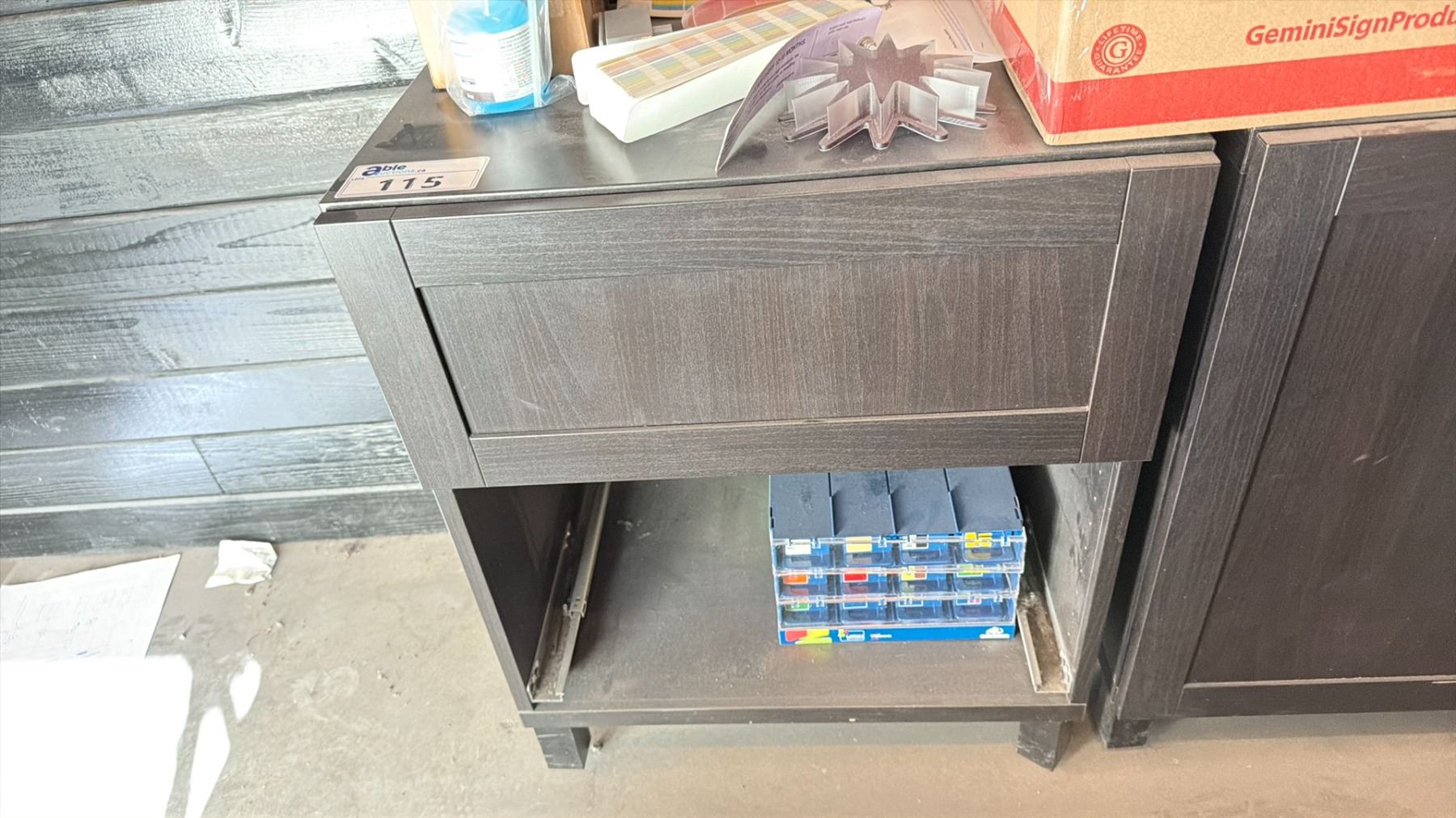 DARKWOOD 2 DOOR STORAGE UNIT AND 2 SINGLE DRAWER STORAGE CABINET AND 2 DOOR STORAGE CABINET