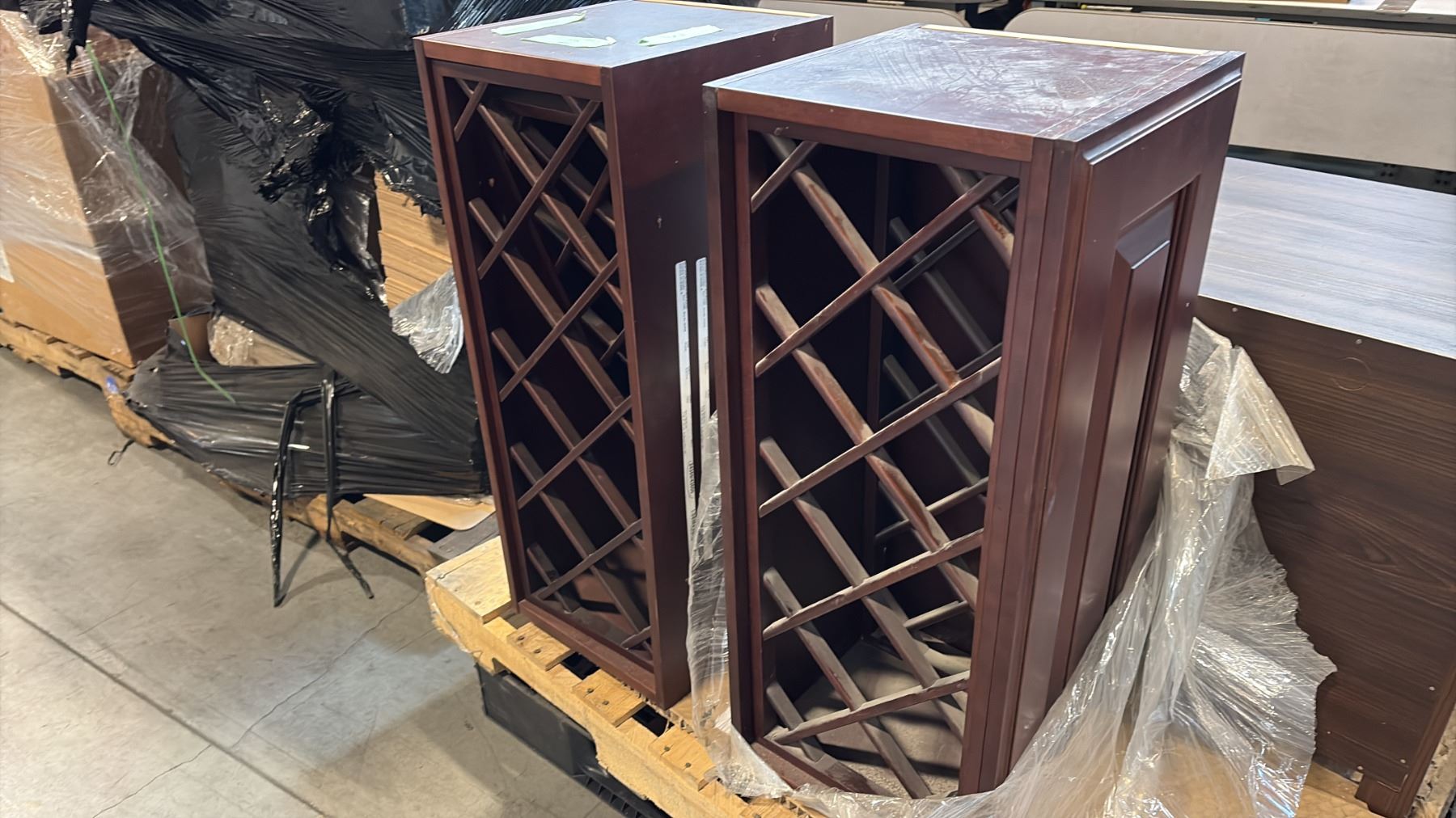 DARKWOOD 42"W TV STAND AND 2 WINE RACKS
