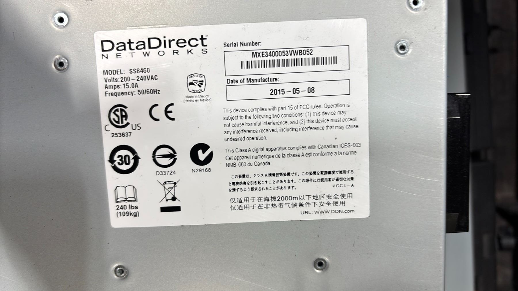 DATADIRECT NETWORKS SS8460 STORAGE SCALER