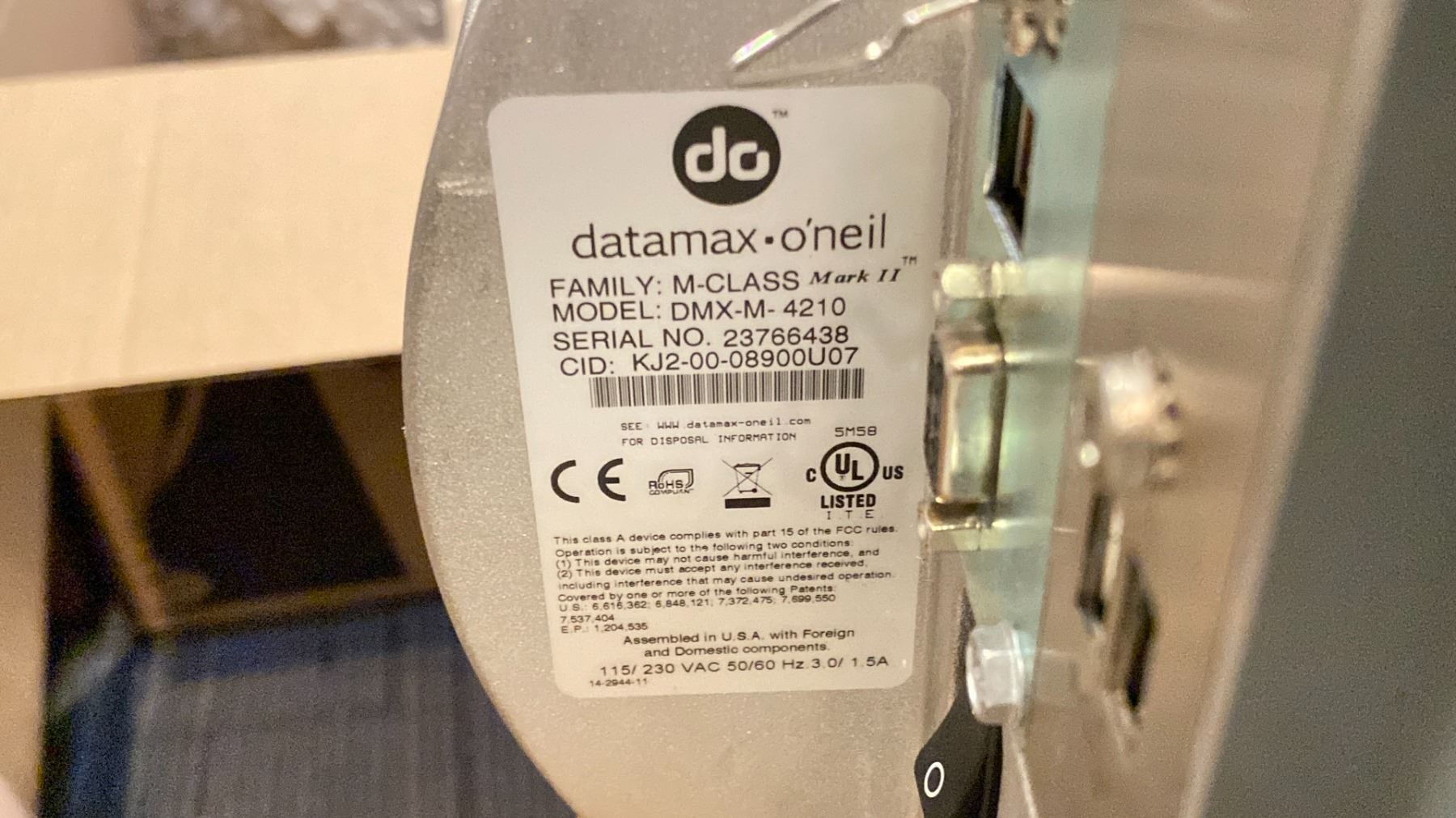 DATAMAX ONEILL BAR CODE PRINTER MODEL DMX-M-4210 LOCATED IN TONER ROOM