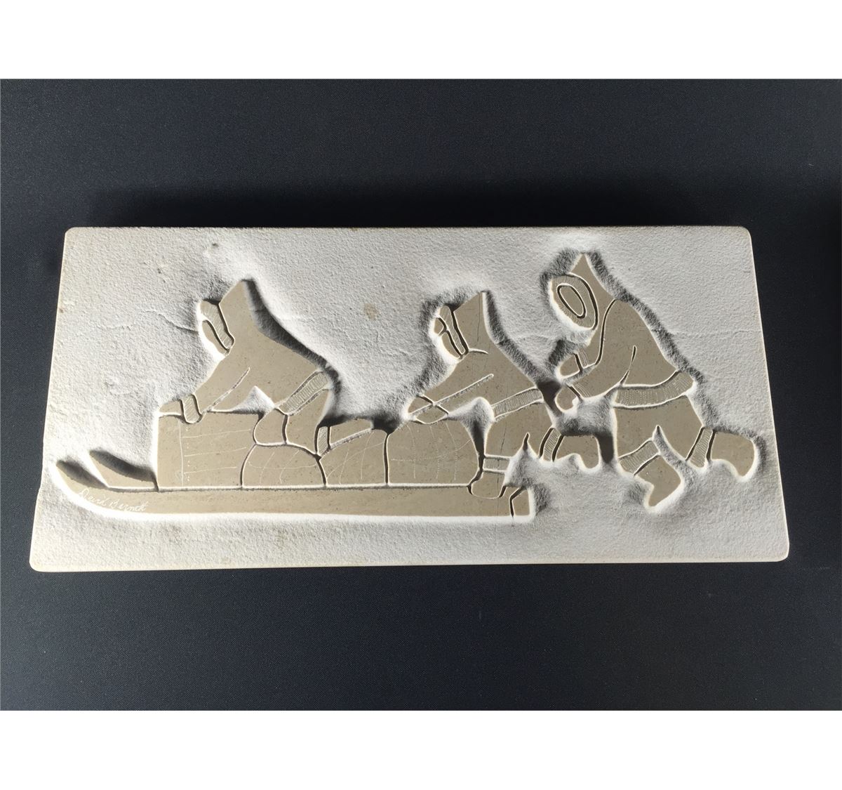 DAVID BERNETT, CANADIAN INUIT MARBLE SCULPTURE "JOURNEY BY SLEIGH" 15" W X 7" H