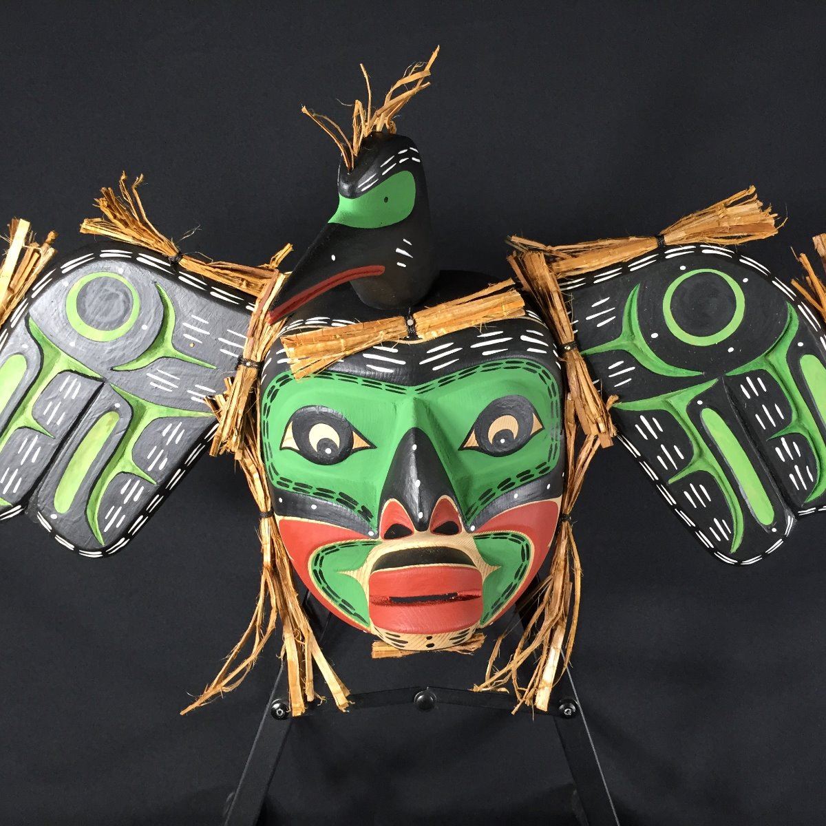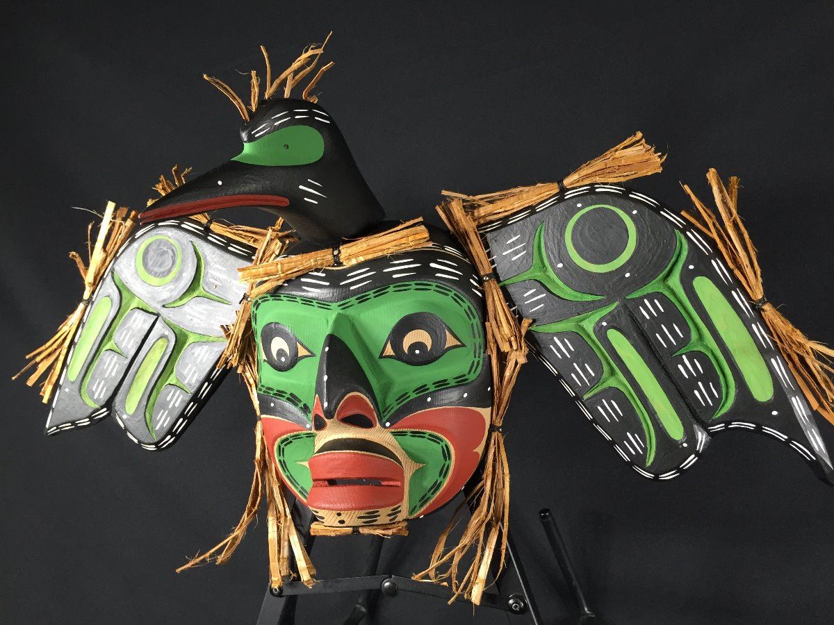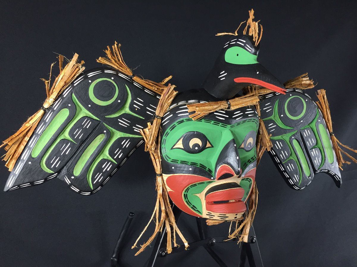 DAVID MUNGO KNOX, KWAKIUTL HUMAN LOON 19" W X 10" H. AS ONE OF THE ONLY BLOOD DESCENDENTS OF THE RENOWNED CHIEF, MUNGO MARTIN HE COMES FROM A LONG LINE OF HEREDITARY CHIEFS, MASTER CARVERS AND SKILLED DANCERS.