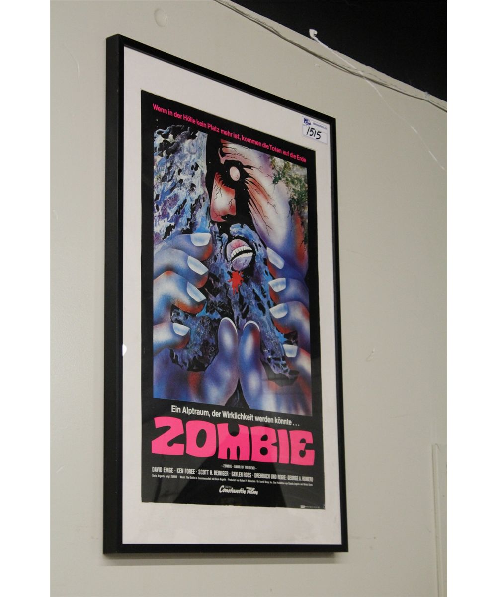 DAWN OF THE DEAD (AKA 'ZOMBIE'), UNIQUE ART ON THIS RARE STYLE GERMAN ONE SHEET, LINEN-BACKED & FRAMED