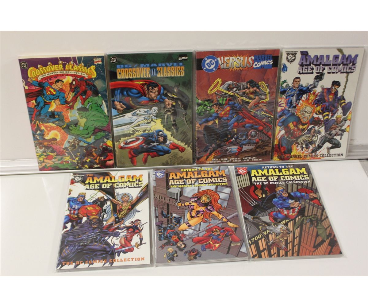 DC/MARVEL CROSSOVER TRADE PAPERBACKS. 7 DIFFERENT OUT OF PRINT & HIGH GRADE.