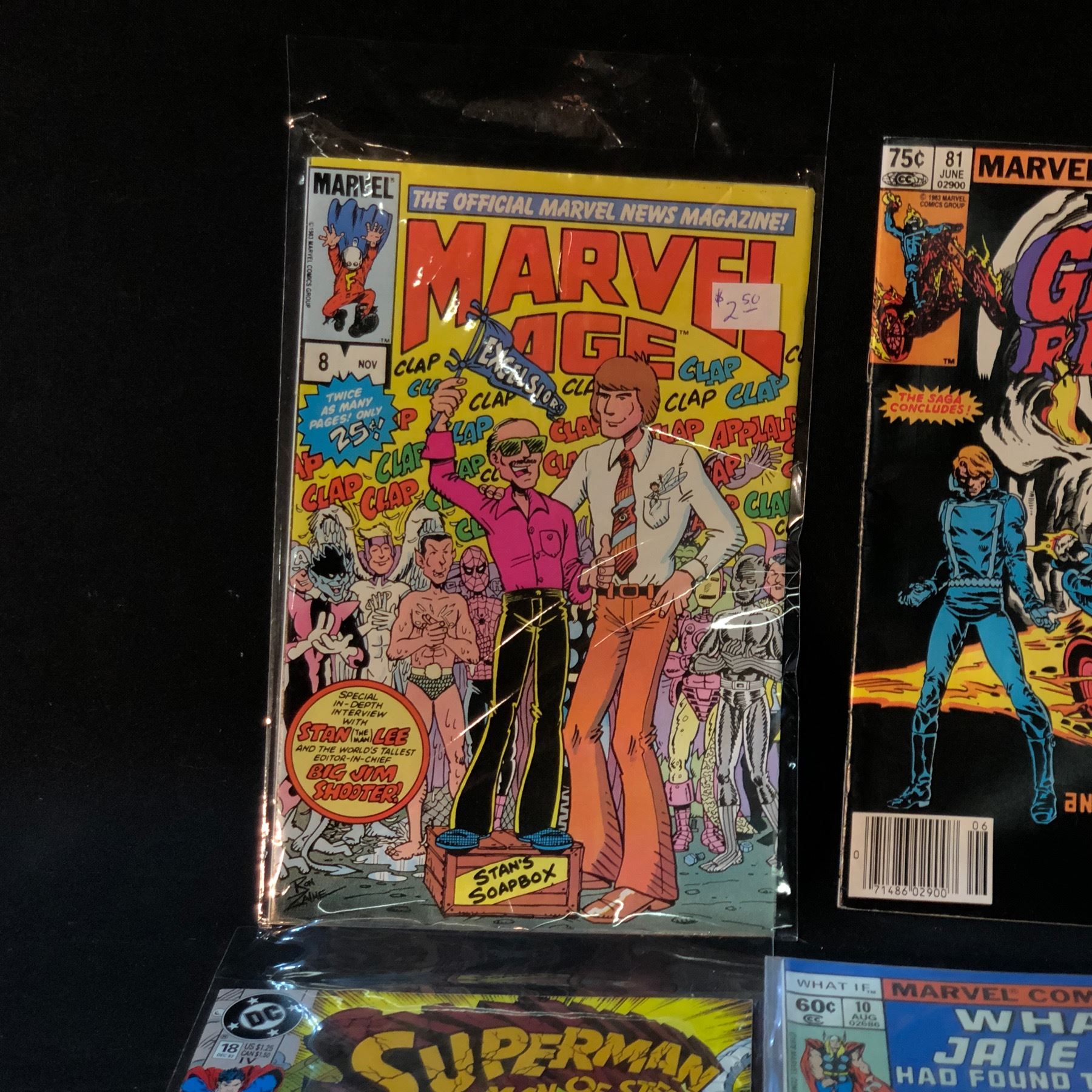 DC & MARVEL KEY ISSUES LOT - INCLUDES FIRESTORM #24 (1ST APP BLUE DEVIL) GHOST RIDER #81 (LOW PRINT LAST ISSUE) MARVEL AGE #8 (STAN LEE COVER) OMEGA MEN #3 (1ST APP LOBO) SUPERMAN: MAN OF STEEL #18 (1ST APP DOOMSDAY) WHAT IF? #10 (1ST APP JANE FOSTER AS THOR) (6 BOOKS TOTAL) MID GRADE AVG (1970S- 90S)