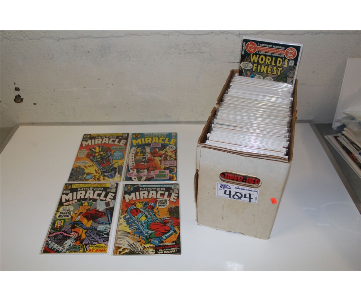 DC MISCELLANEOUS BRONZE AGE SHORT BOX OF MIXED RUNS & TITLES. INCLUDES MISTER MIRACLE RUN WITH #1, 4 DIF 100 PAGE GIANTS, ETC. MIXED GRADES.