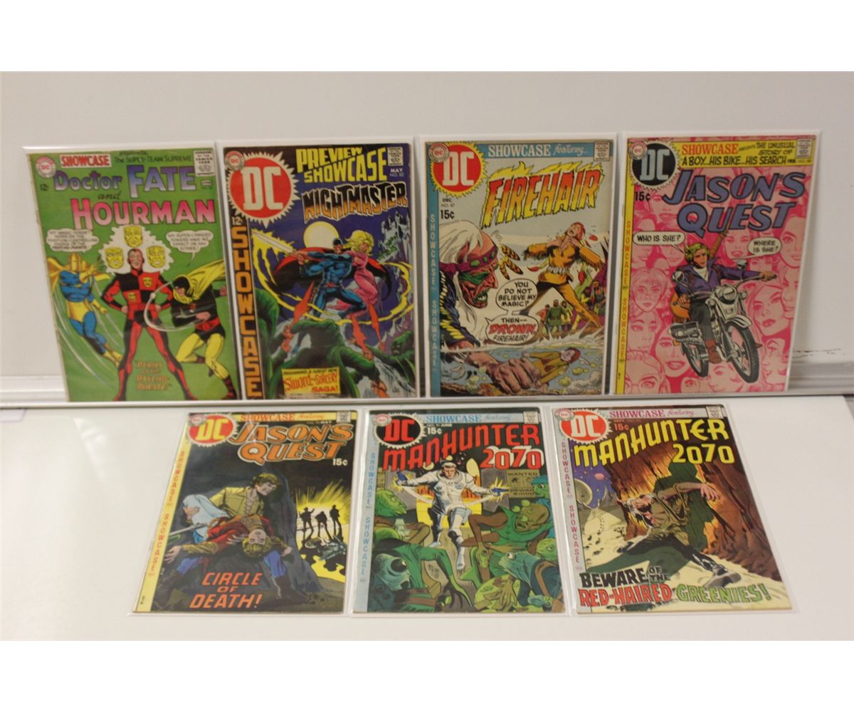 DC SHOWCASE & 1ST ISSUE SPECIAL RUNS, 10 SHOWCASE BETWEEN #56 (1965) - 103 & 4 1ST ISSUE SPECIAL, INCLUDING #1 & #8 (1ST WARLOAD) MIXED GRADES, NICE, SOLID COPIES