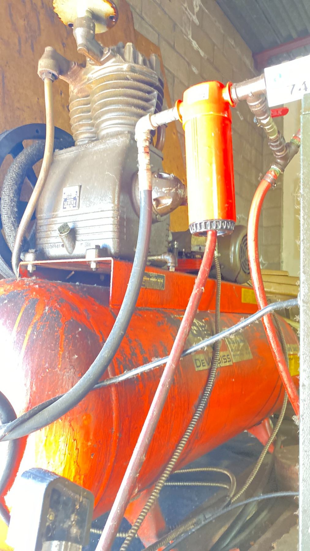 DE VILBLISS COMPRESSOR VAP-50/500 ,5HP 230/460 V 3 PHASE MAX PRESSURE 175 TANK SIZE 80 H **REMOVAL OF THIS PIECE REQUIRES HIAB/CRANE LIFT AND HEAVY MOVING SKATES**