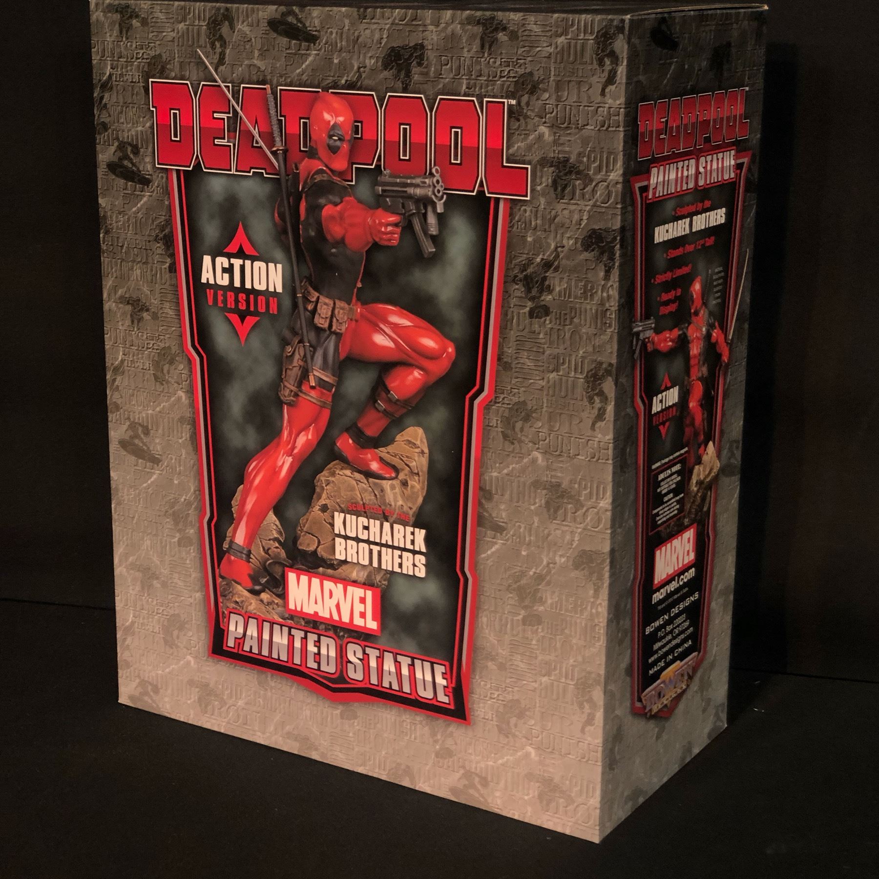DEADPOOL PAINTED STATUE BY THE KUCHAREK BROTHERS, ACTION VERSION, IN ORIGINAL PACKAGING