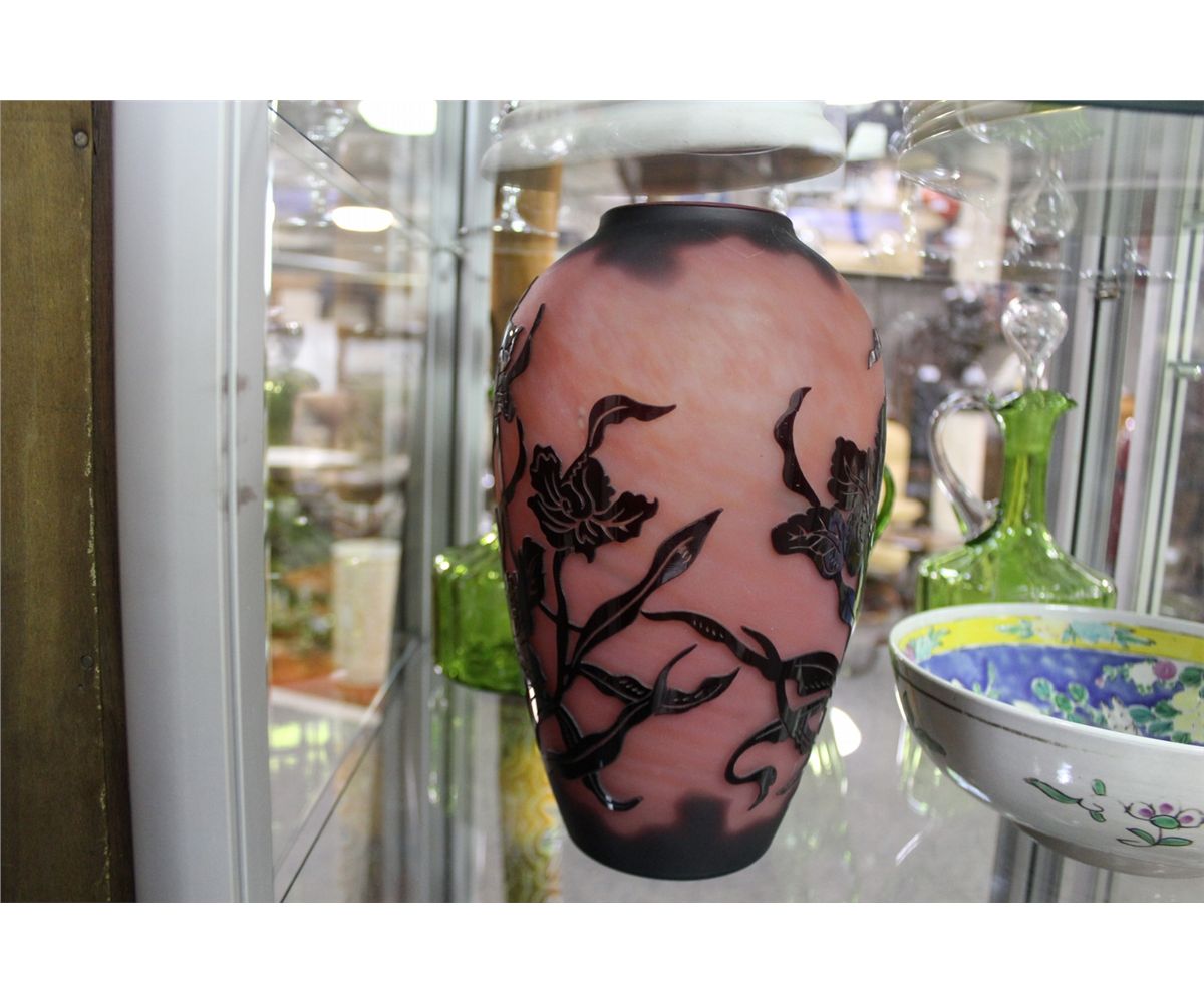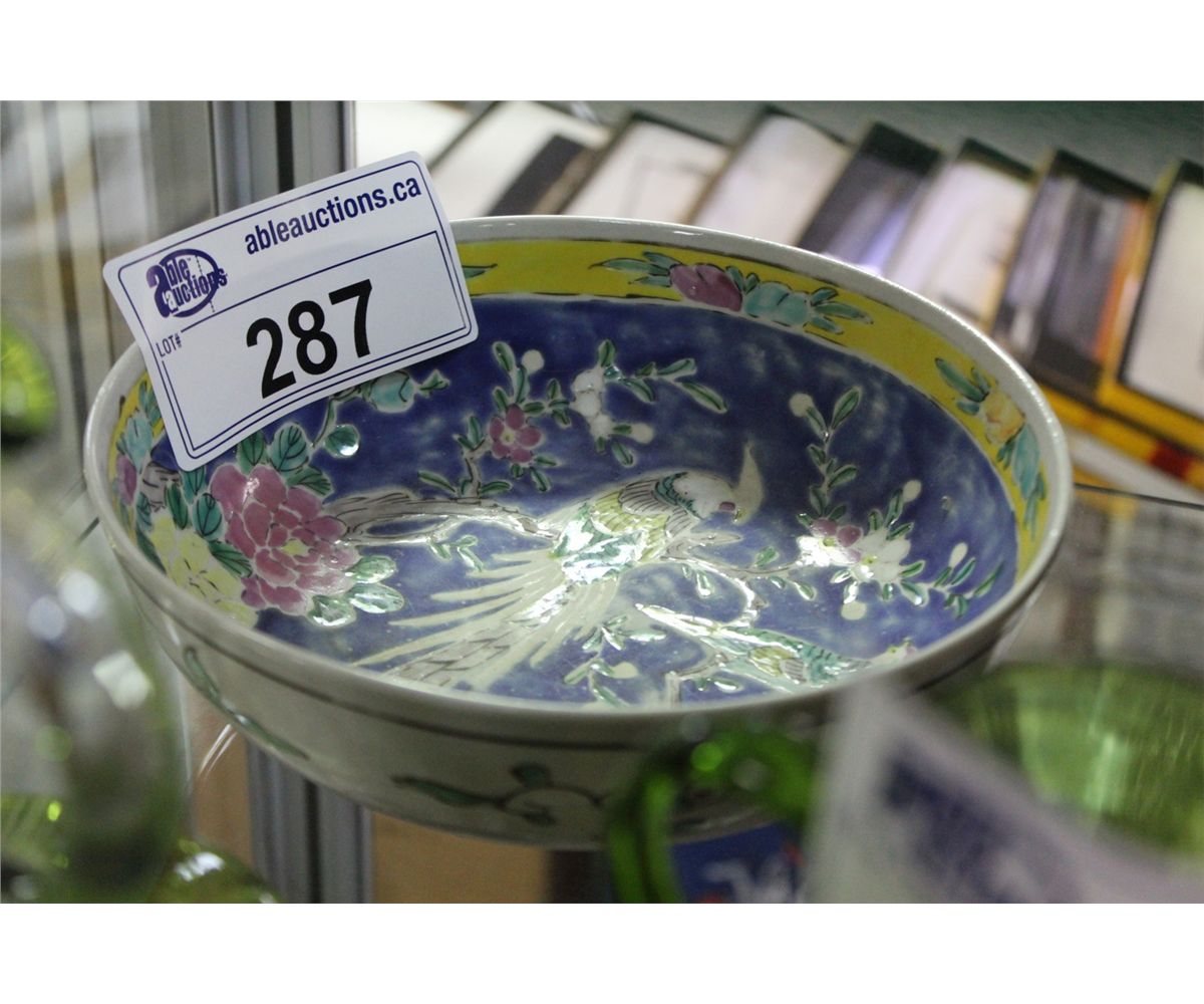 DECORATIVE ASIAN BOWL AND ACID ETCHED VASE