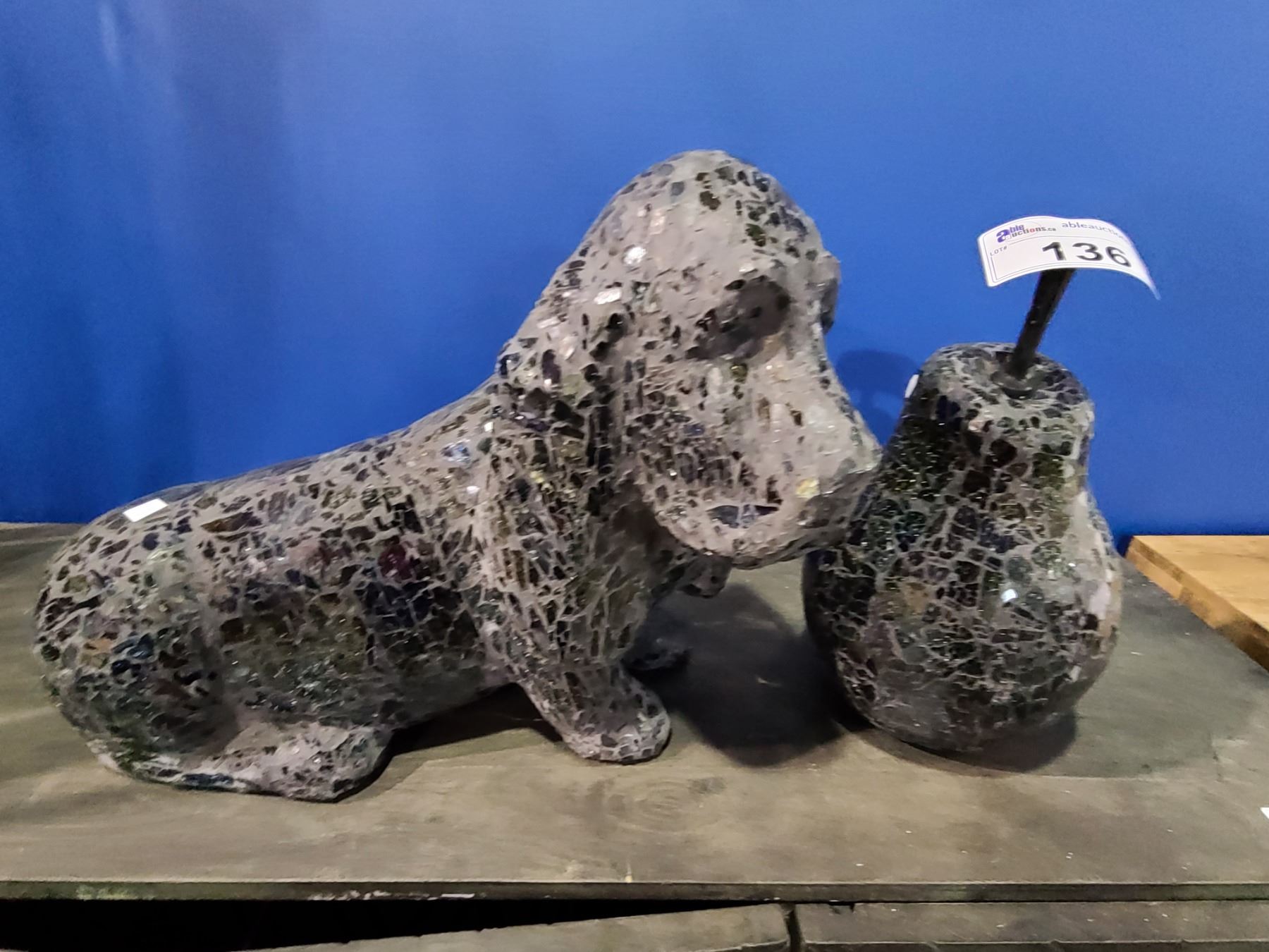 DECORATIVE MATCHING DOG & PEAR STATUE