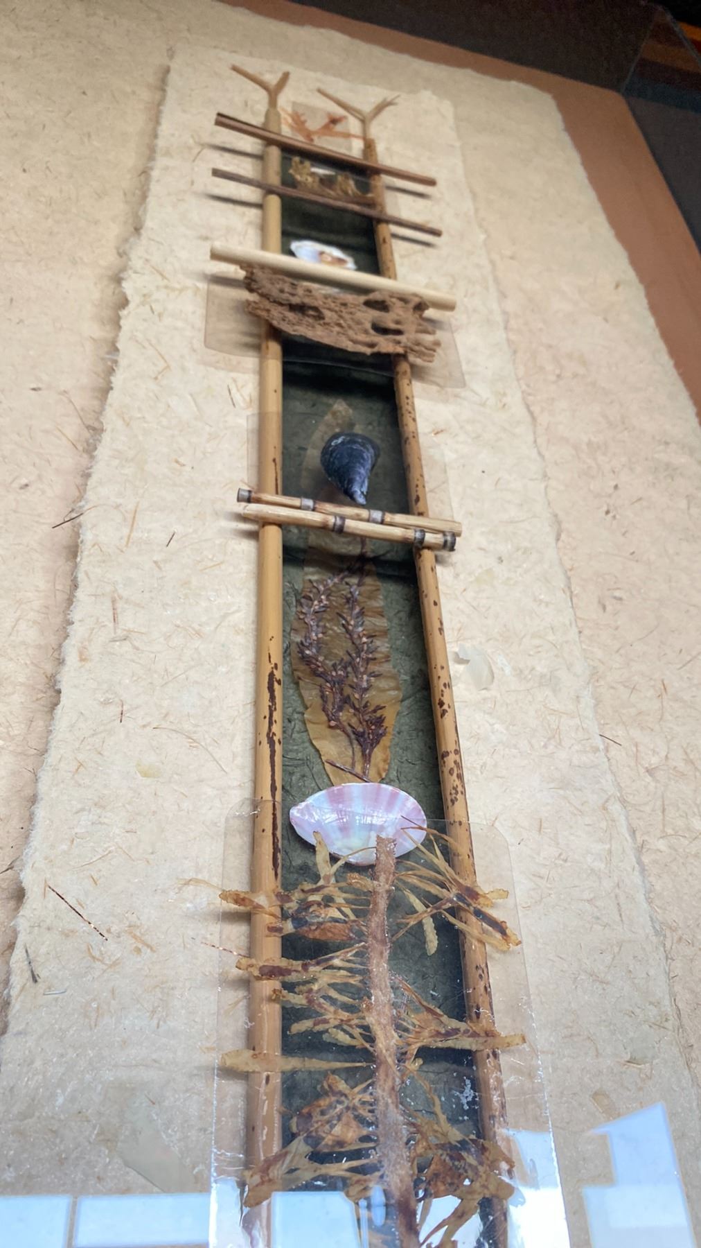 DECORATIVE WALL ART BY BC ARTIST JAN MACLEOD IN PLEXIGLASS CASE APPROX 55" L X 24 " W