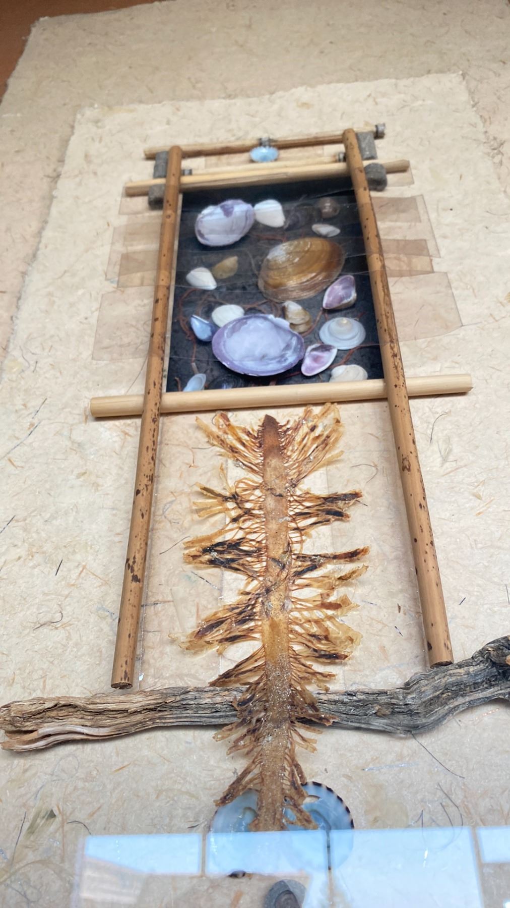DECORATIVE WALL ART BY BC RESIDENT JAN MACLEOD IN PLEXIGLASS CASE APPROX 55" L X 24 " W
