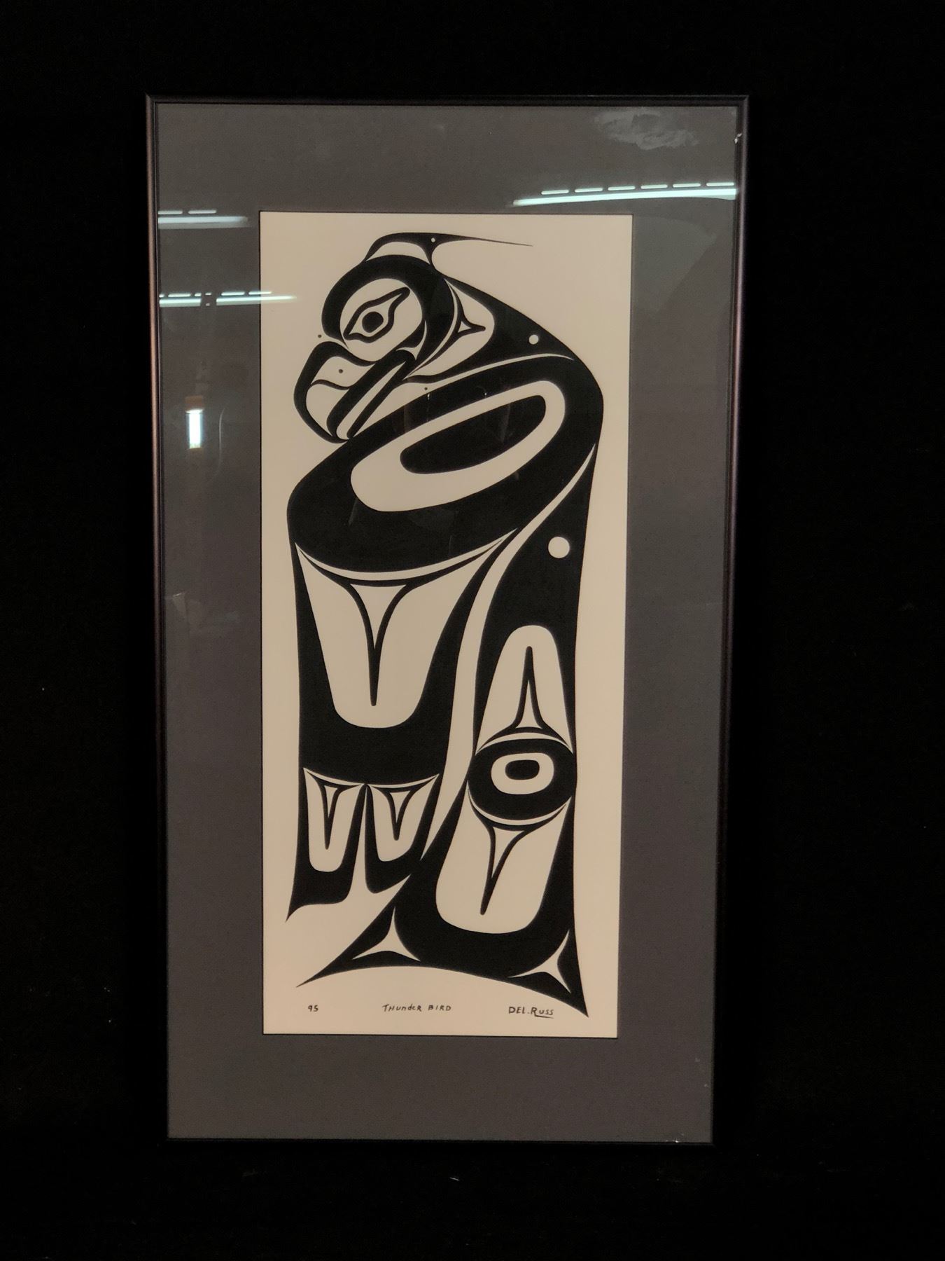 DEL. RUSS "THUNDERBIRD" ORIGINAL FRAMED PAINTING, SIGNED BY ARTIST BOTTOM, DATED 1995, 27.5'' T X 15'' WIDE INC. FRAME