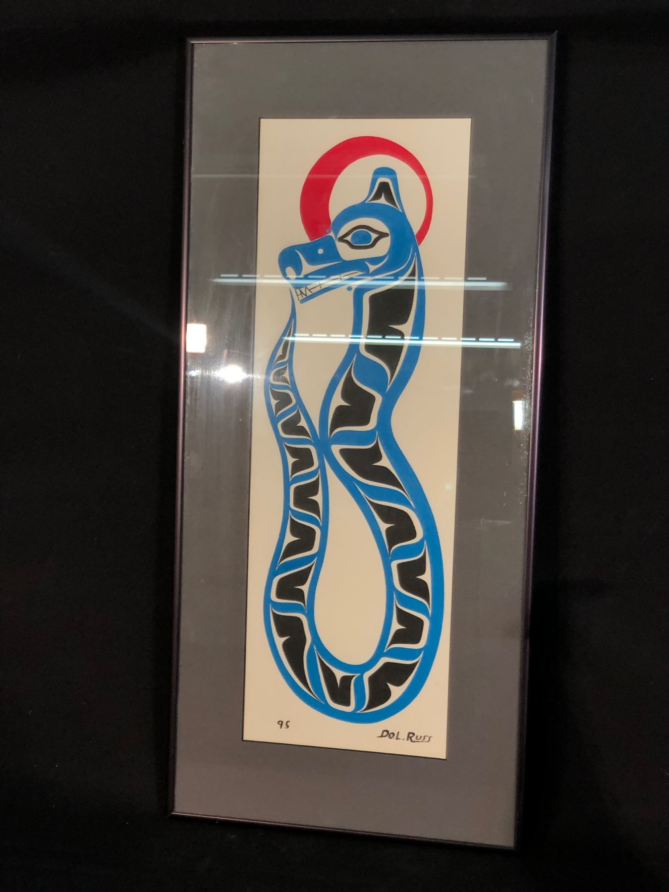 DEL. RUSS UNTITLED SERPENT ORIGINAL FRAMED PAINTING, DATED 1995, 27'' T X 12'' W INC. FRAME, SIGNED BY ARTIST ON BOTTOM