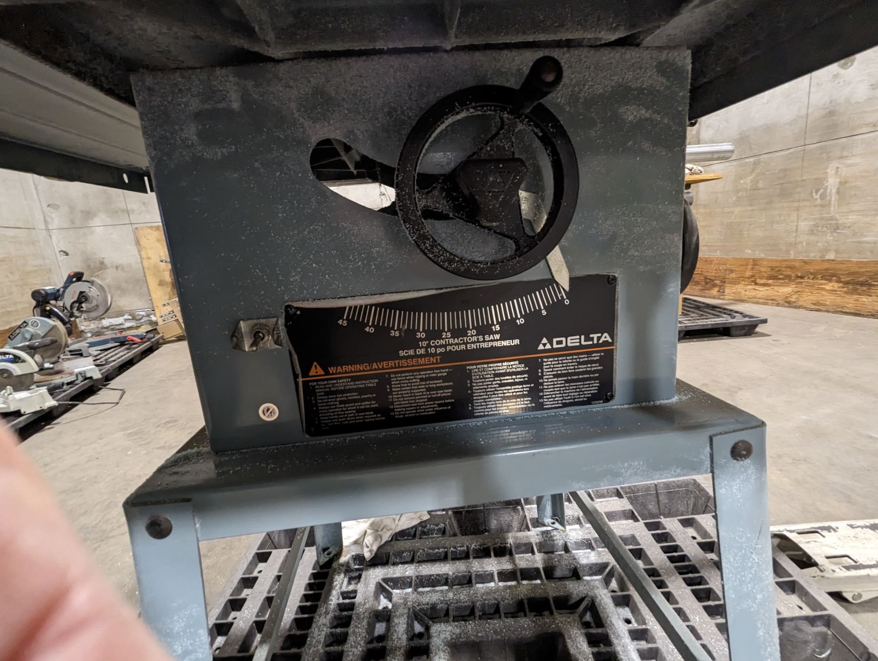 DELTA 10" TABLE SAW MODEL 34-444C. 1.5 HP 110V 48" FENCE. TOP SHOWS SOME RUST BUT WOULD LIKELY CLEAN UP NICELY