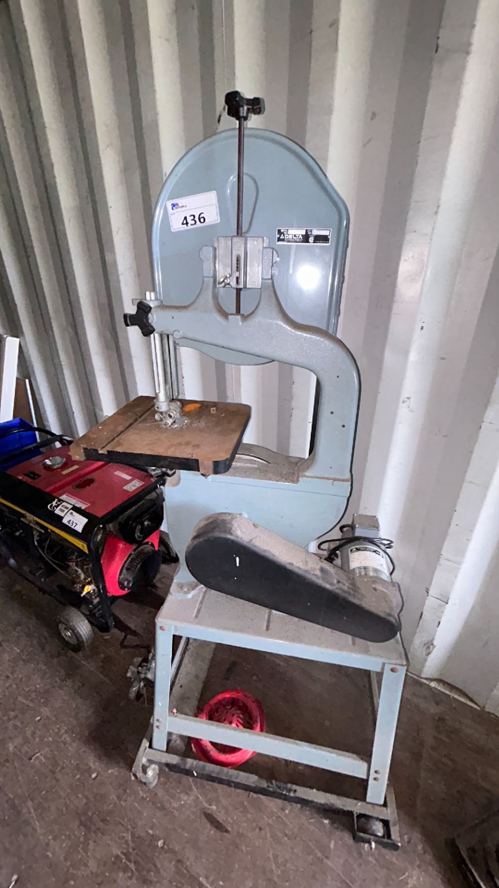 DELTA BAND SAW MODEL 28-245 ON WHEELED STAND LOCATED IN CONTAINER