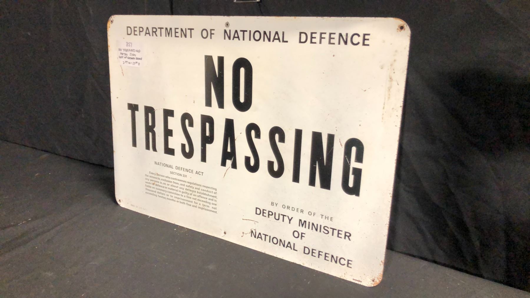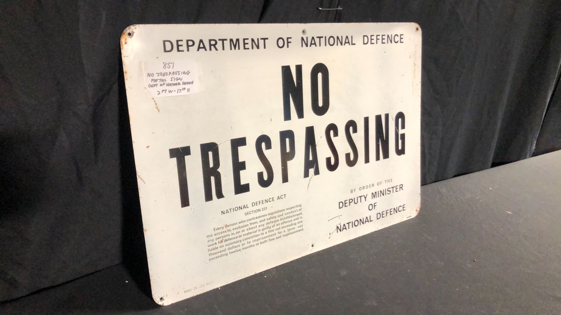 DEPT. OF NATIONAL DEFENCE 'NO TRESPASSING' 24" X 17" METAL SIGN
