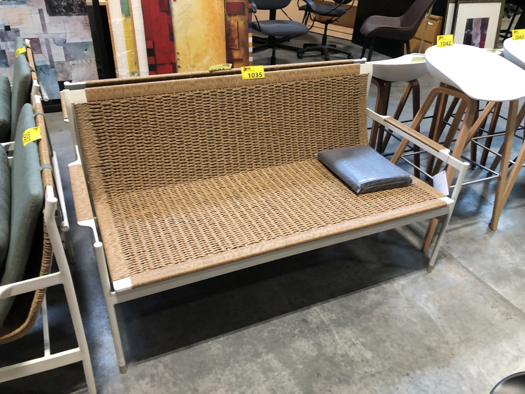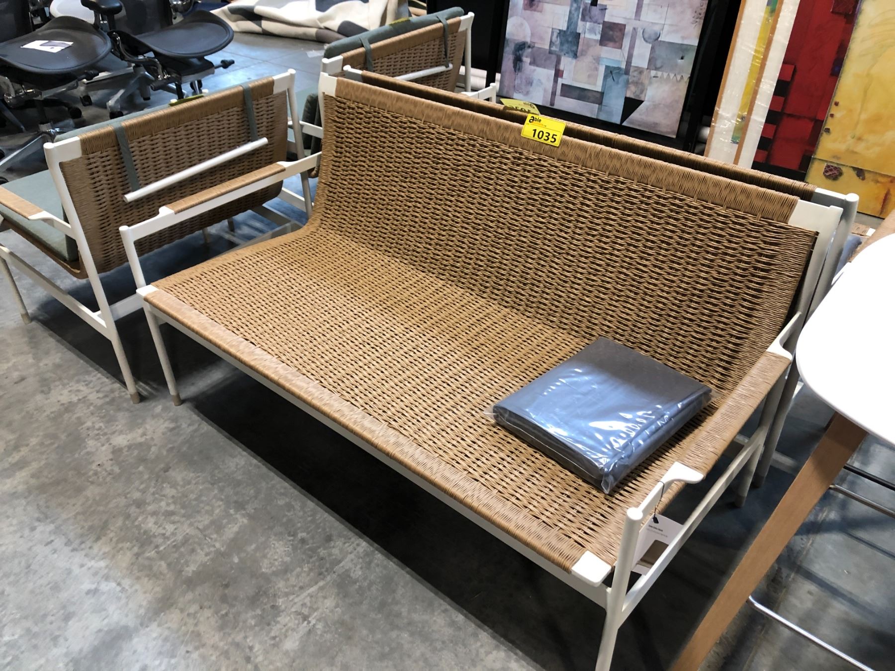 DESIGN WITHIN REACH SOMMER OUTDOOR COLLECTION 2 SEAT SOFA WITH COVER, RETAIL VALUE $3,260