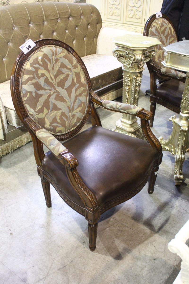 DESIGNER LEATHER AND FABRIC PARLOUR CHAIR
