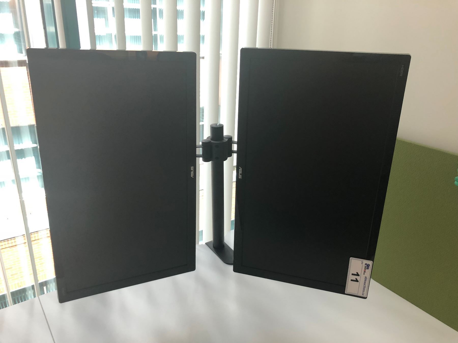 DESK MOUNT FULLY ADJUSTABLE DOUBLE MONITOR STAND WITH 2 ASUS 24  ROTATING MONITORS