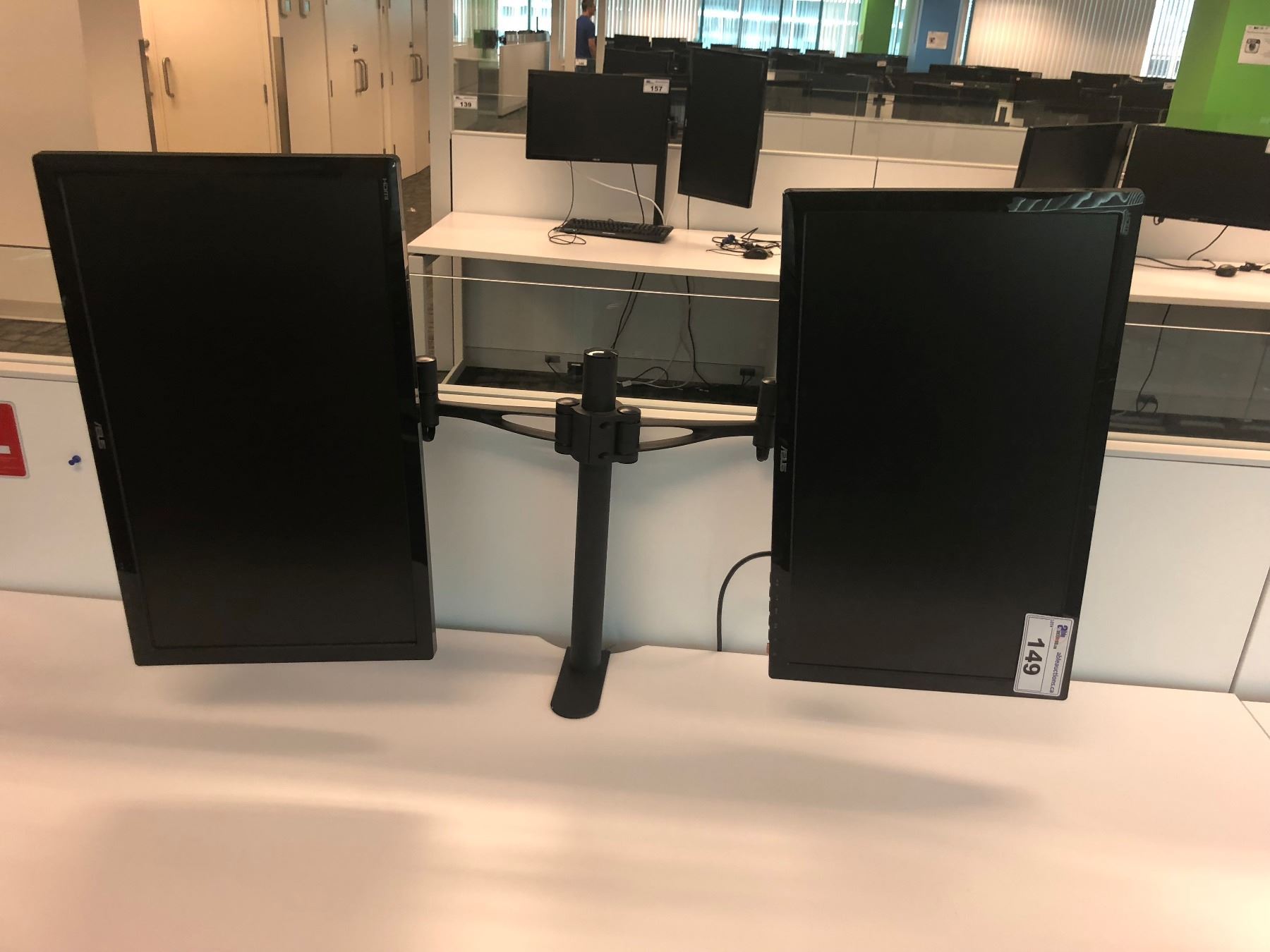 DESK MOUNT FULLY ADJUSTABLE DOUBLE MONITOR STAND WITH 2 ASUS 24" ROTATING MONITORS