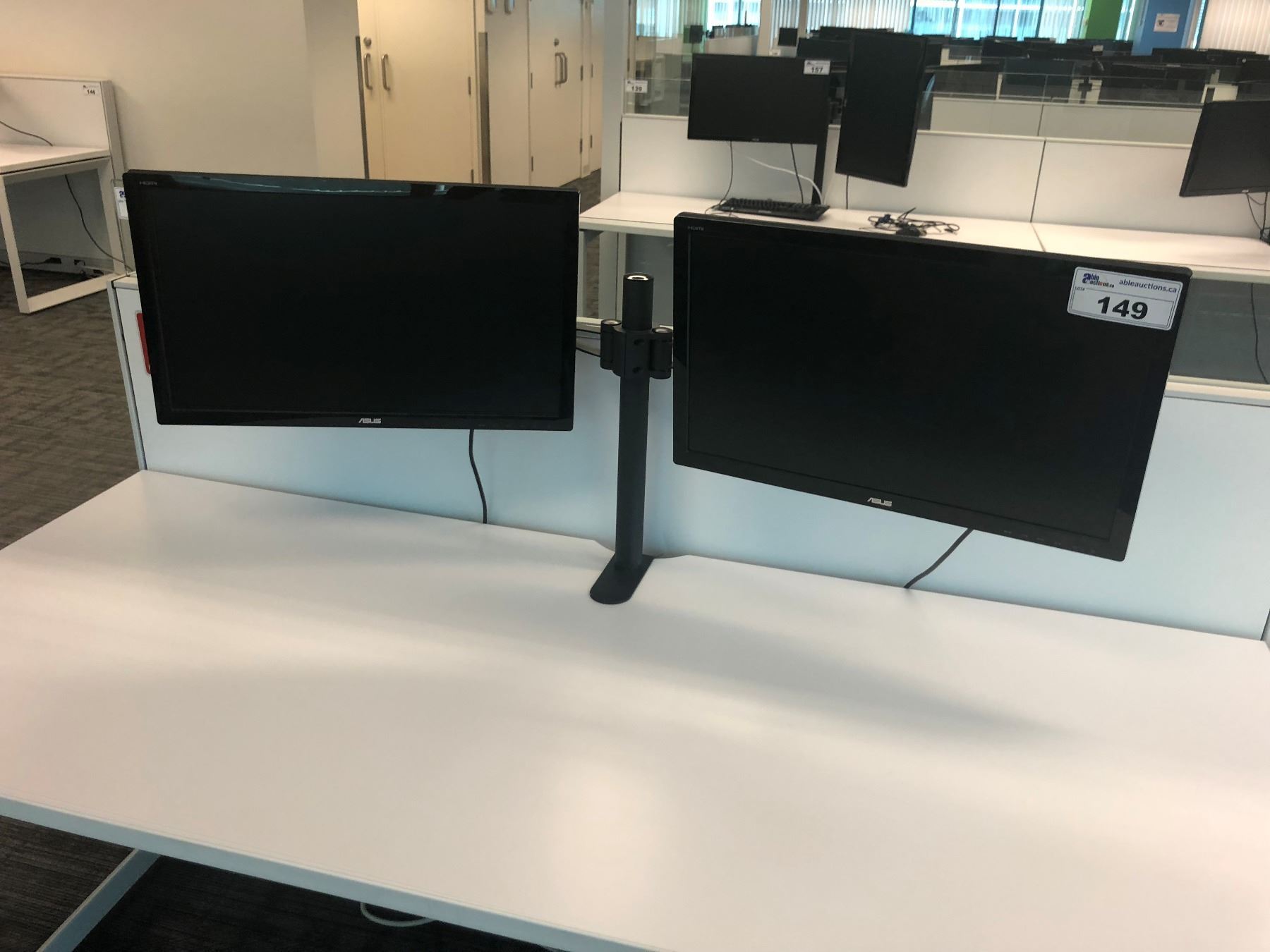 DESK MOUNT FULLY ADJUSTABLE DOUBLE MONITOR STAND WITH 2 ASUS 24  ROTATING MONITORS
