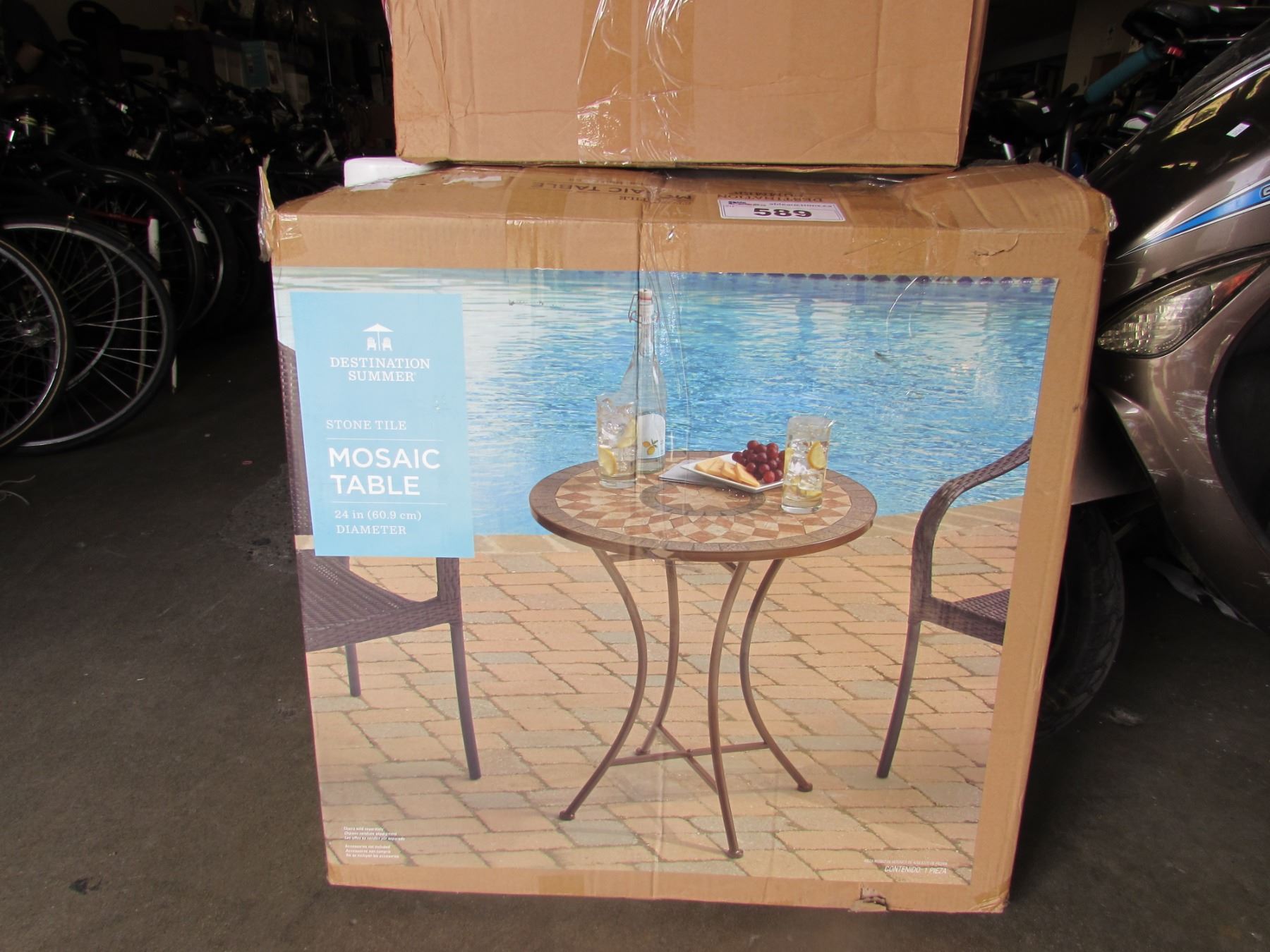 DESTINATION SUMMER STONE TILE MOSAIC 24" DIAMETER TABLE